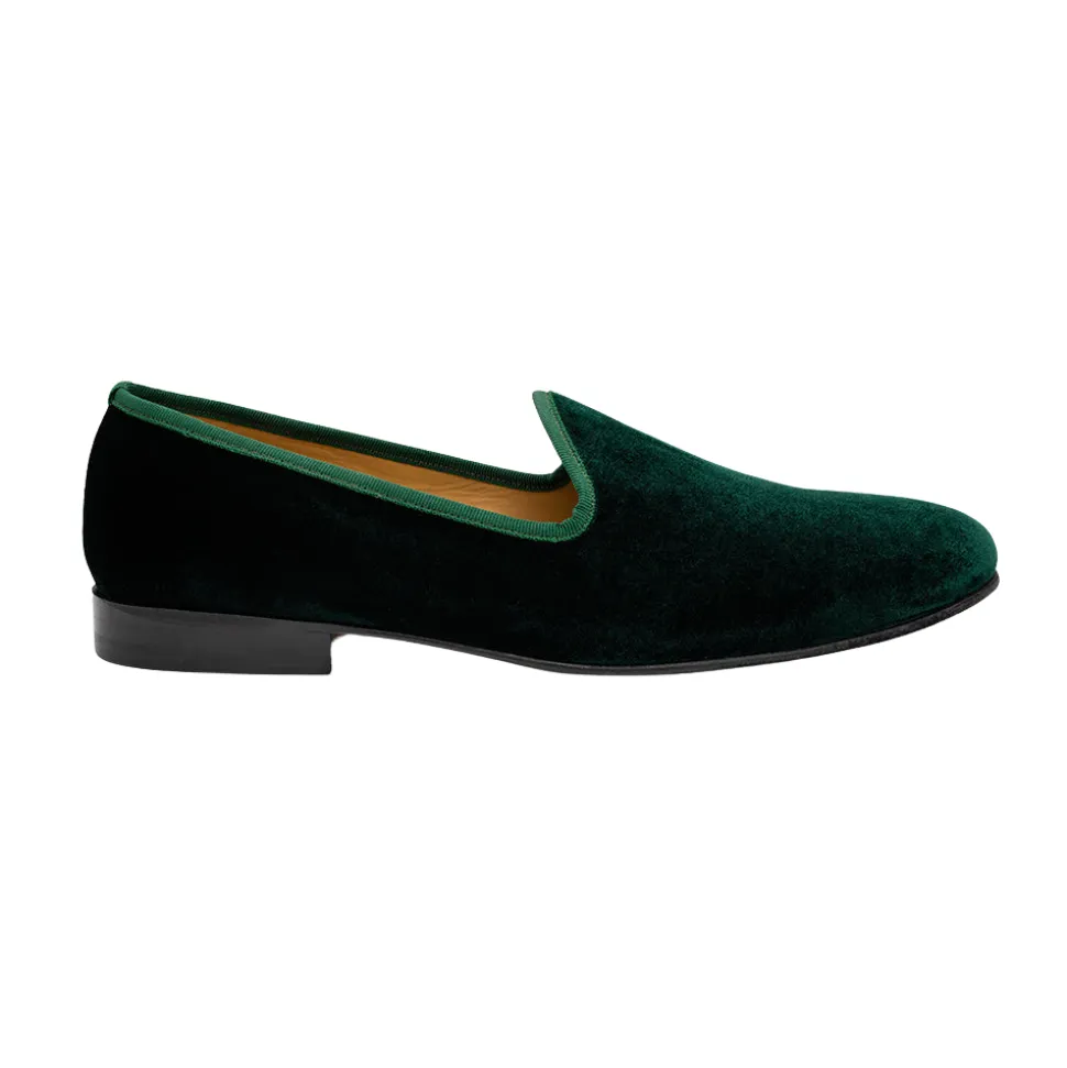 Started in 2005 as a men’s shoe brand, specializing in Italian-made loafers and slippers, Del Toro brings the same eye for timeless quality and a contemporary edge to its women’s footwear and carefully made formal accessories. The perfect slipper for driving up the coast, or just pulling up to your next event, the Men’s Green Velvet Slipper II is made from Del Toro’s renowned construction, in buttery velvet, with a contrasting red stripe on the back.