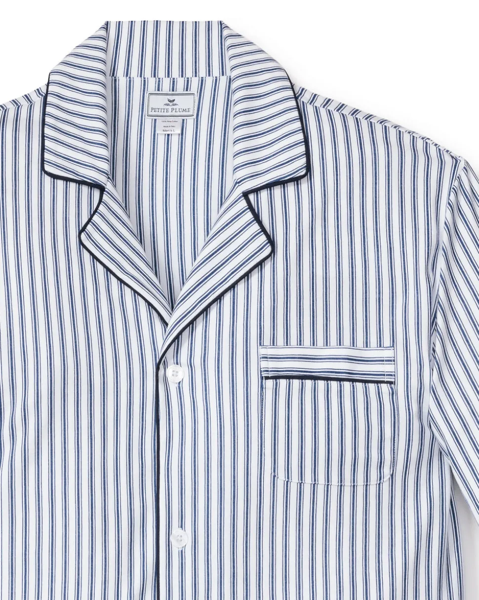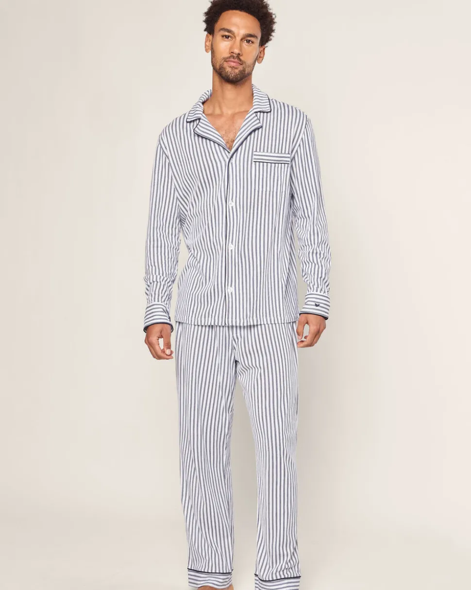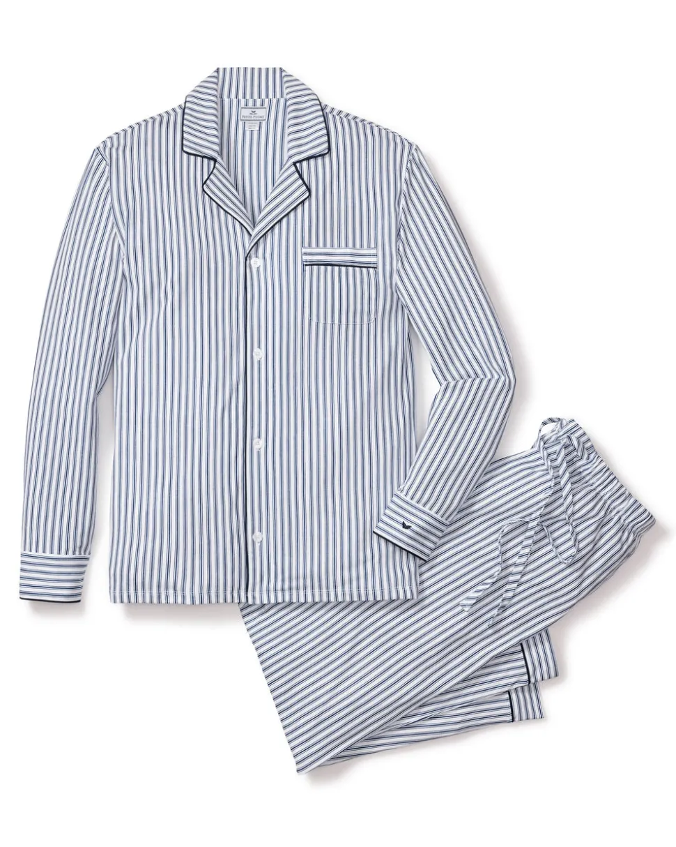 Petite Plume wishes you a “bonne nuit,” and in their luxury sleepwear, it’s hard not to oblige. The Men’s Pima Pajama Set in Navy French Ticking features a classic pattern that is here to stay, with no frills just clean, crisp lines. The quintessential, timeless pajama silhouette that always feels fresh: supple elastic, single piping detail at collar, and pajama pant cuff and practical pockets.