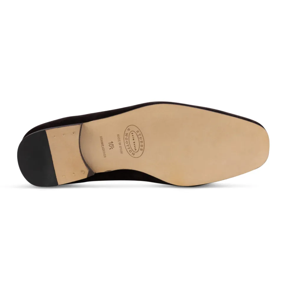 Founded in Palm Beach, Florida, Stubbs & Wootton has perfected the art of creating elevated, handmade women’s, men’s, and children’s shoes. Known for their exquisite needlepoint and embroidery, their slippers feature intricate storytelling motifs inspired by heritage traditions. The Men’s The Hunt Espresso Velvet UK Slipper is crafted from rich cotton velvet and trimmed with tonal silk cotton grosgrain. The embroidery depicts a classic fox-hunting scene, with riders in traditional red coats as distinguished members of the hunt.