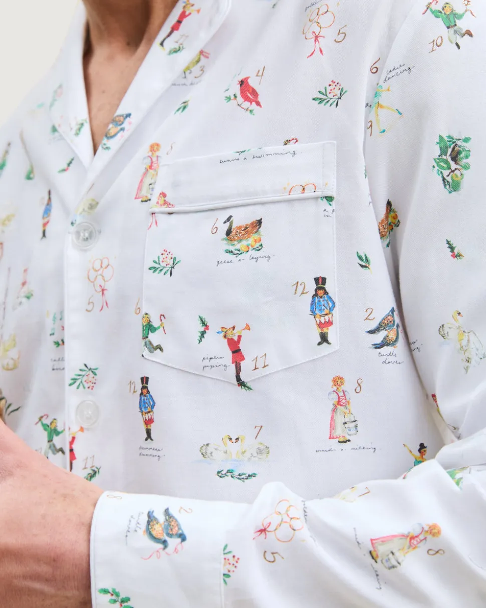 Petite Plume wishes you a “bonne nuit,” and in their luxury sleepwear, it’s hard not to oblige. Celebrate each of the twelve days of Christmas with a new holiday design. This classic, clean-lined pajama set is an instant keepsake. The twill design is comfortable and durable, with a relaxed fit and a breathable feel. The crisp piping and logo-button closure add a nod to vintage details.
