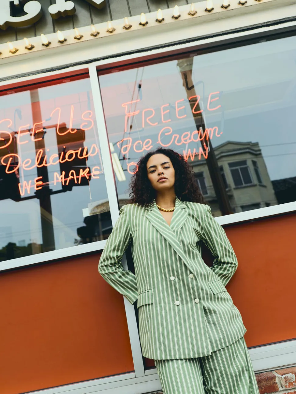 Tomboy looks, girly-girl styles, and an always fashionable approach define EDDY’s aesthetic. With a focus on bold and feminine silhouettes, EDDY dresses and tops pair elevated California bohemian with global inspiration; these are clothes designed to make you feel good inside and out. The Meredith Blazer in Meadow Stripe takes a double-breasted classic and makes it modern. Tailored with ease in soft green and white stripes, this oversized yet structured silhouette is effortless enough to toss over a tee but polished enough to carry into a dinner meeting.