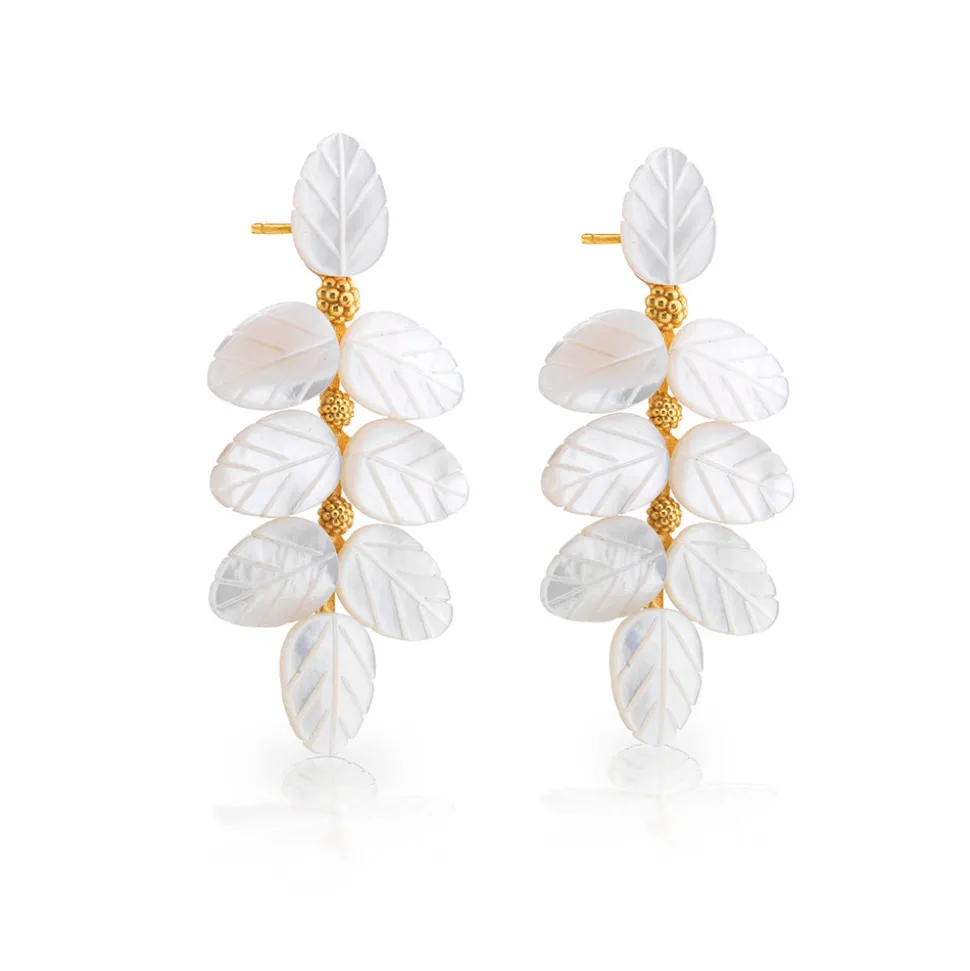 Mother of pearl. 18K gold over brass with anti-tarnish coating.