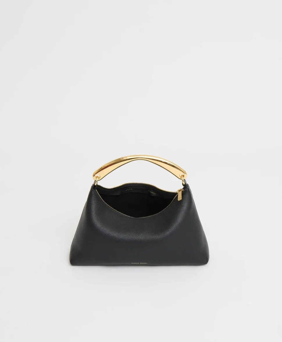 Founded in 2013, Mansur Gavriel redefines luxury through its distinctive approach to color and form. Born out of a passion for art and design, Rachel Mansur and Floriana Gavriel created two simple silhouettes—launching with just a bucket and tote. The brand’s designs, dreamt up in New York and crafted in Italy, continually challenge the notions of what expression can be. The Metal Handle Rhea in Black pairs soft structure with sculptural charm, crafted in supple Italian calf leather with a distinctive top handle that brings an artful edge to its understated silhouette.