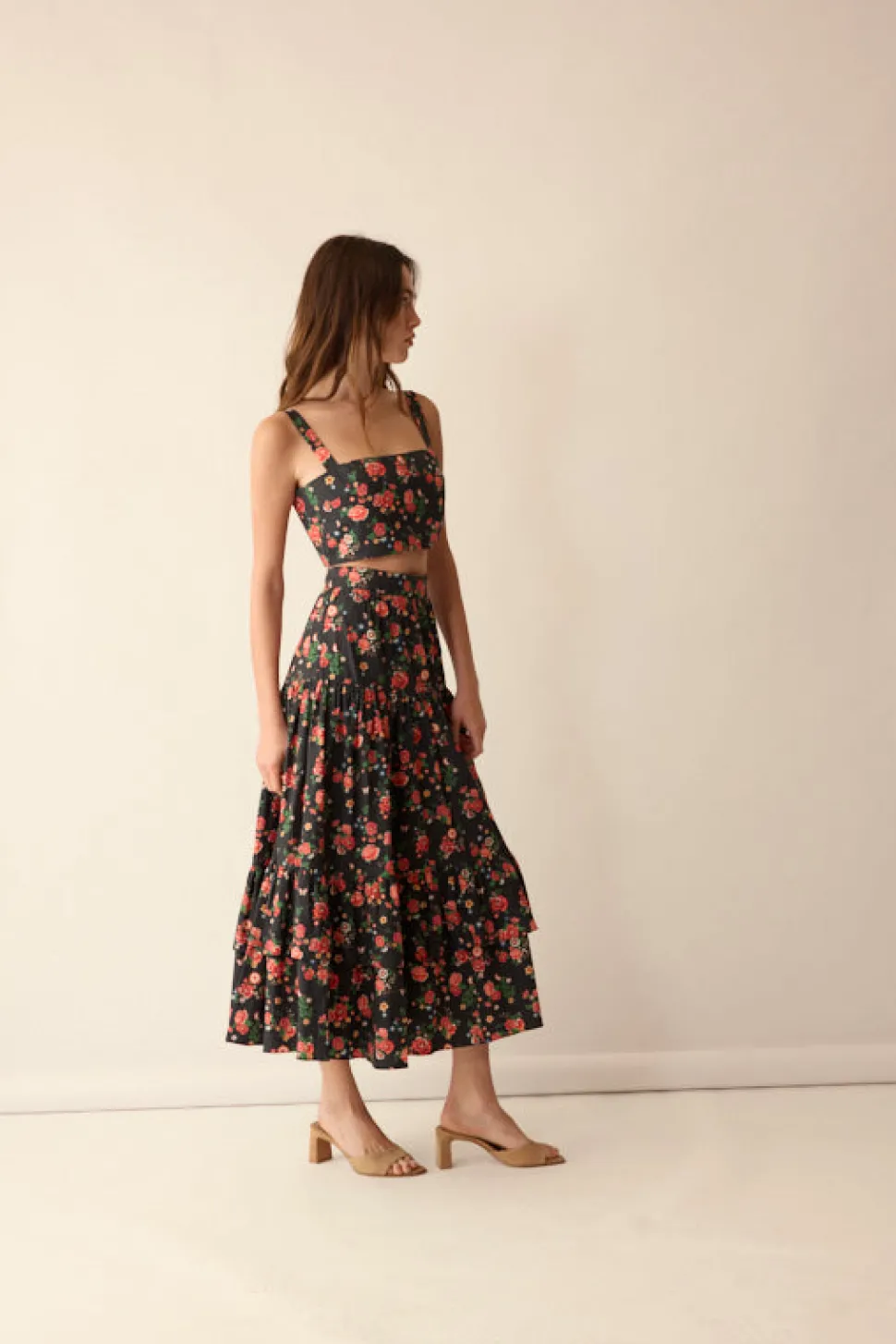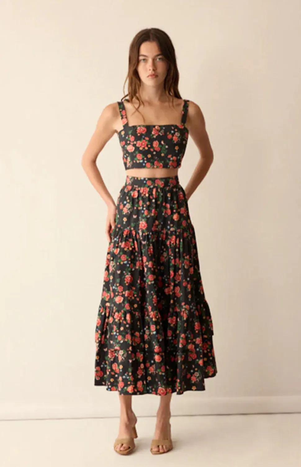 Loulou, founder of Loulou La Dune, extends her refined feminine touch from interior design and tableware into the realm of ready-to-wear fashion. Recognizing the desire for beautifully crafted, effortless, and chic clothing, she has created a capsule collection that integrates elegance and ease into everyday wear. Cool and breezy, the Mia Top in Midnight Garden is a meticulously designed crop top that highlights your waistline, creating a flattering and modern silhouette. The charming bow straps add a delightful feminine touch while allowing for an adjustable fit, ensuring the top molds seamlessly to your shape.