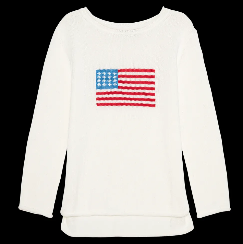 Taylor Ivey designer Ellsworth & Ivey’s original Nantucket sweater to reflect the happy times they spent together on that special island. Today, the brand offers an entire line of chic, whimsical knitwear allowing wearers to celebrate their own nostalgia and make new memories in distinctive style. The Mid-Weight American Flag Sweater seamlessly adds classic flair to your summer wardrobe.