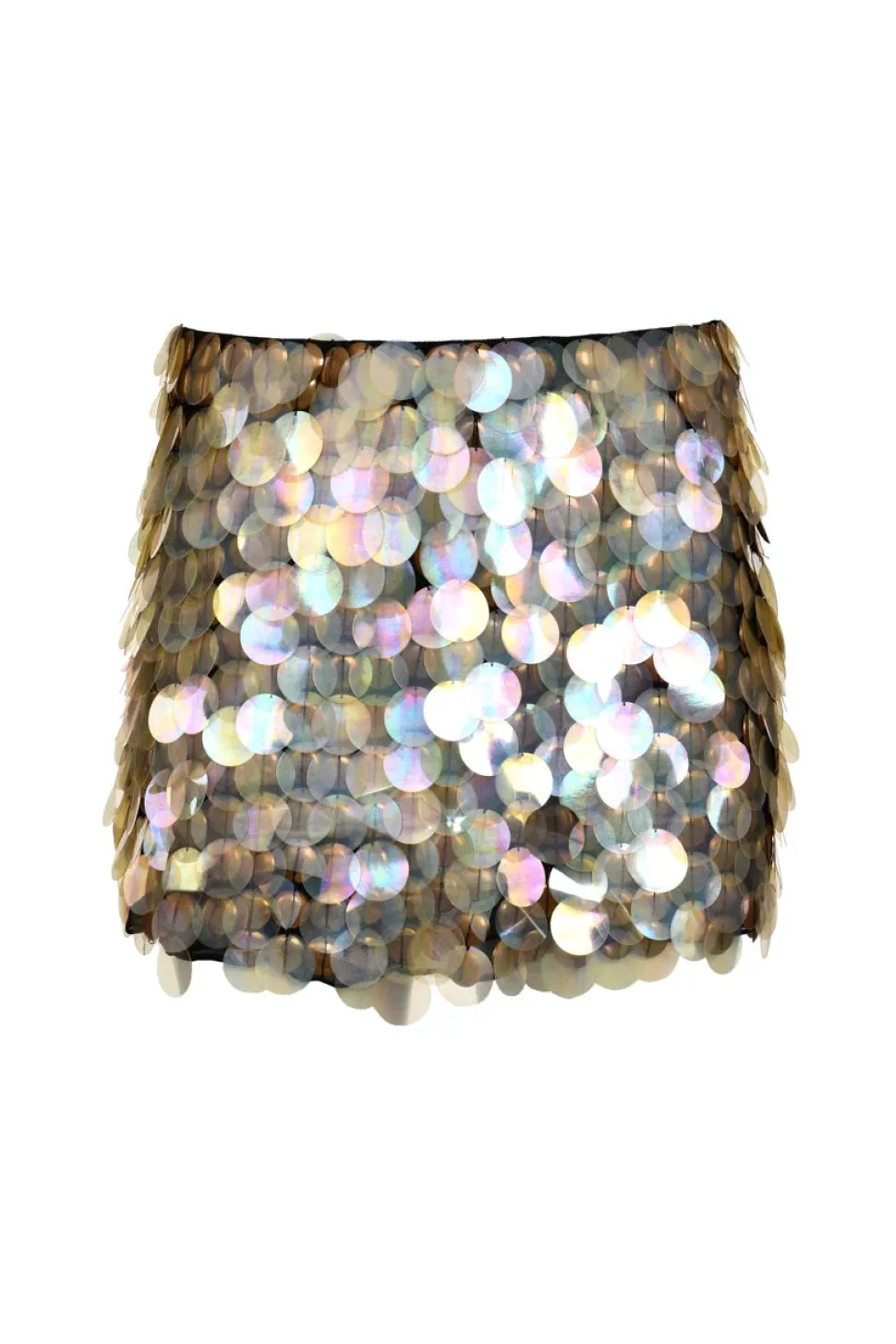 From her atelier in Barranquilla, Colombia, Francesca Miranda combines the diverse, indigenous aesthetic of her surroundings, as well as her own European roots, to produce sumptuous womenswear, bridal, and household objects, each bearing the essential spirit of artistry and craftsmanship. The Miguela Sequin Mini Skirt hugs the hips for a flattering fit and adds some flash with oversized sequins.