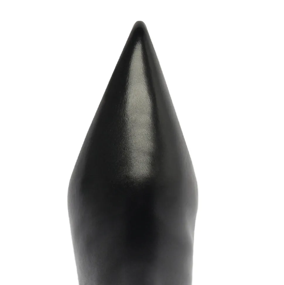 Materials: Leather, cow leather lining, cow leather outsole. Stiletto heel. Zip closure. Pointed toe. Rubber patch at the heel. Heel height: 3.5″.