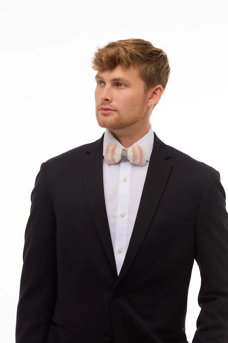 Brackish began with one feather bow tie designed by Ben Ross and gifted to his groomsman, Jeff Plotner. Since its inception, the brand has blossomed into full line of men’s and women’s accessories designed and handcrafted in Charleston, South Carolina with each piece focused on honoring the beauty found in nature. Elegant and effortlessly refined, the Millerton Bow Tie features a sleek grey wrap complemented by fluffy white and soft pink goose feathers. The soft hues and delicate texture create a timeless look that’s both sophisticated and subtly playful. Ideal for adding a touch of natural beauty to any formal or semi-formal outfit, the Millerton Bow Tie brings an elevated elegance with its soft, airy feathers and understated design.