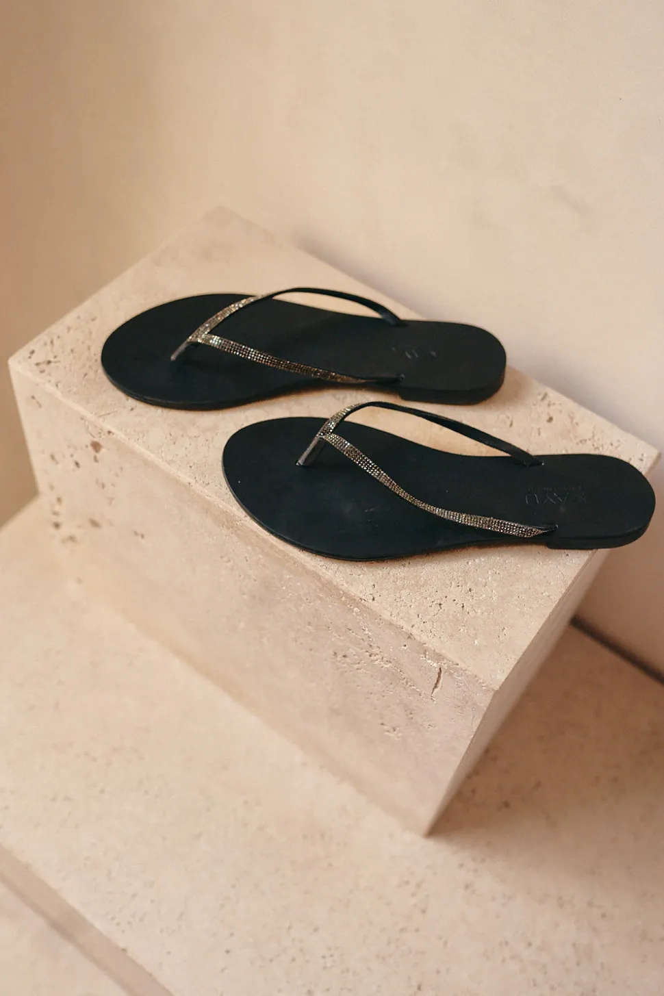 Designer Jamie Lim grew up in South East Asia, surrounded by the batik kaftans worn by her mother, and handmade rattan dining chairs. As she witnessed these artisanal goods be replaced by mass produced synthetics, Jamie created Kayu as a means to offer timeless personal and home accessories, made with the finest natural materials, and preserve indigenous craft. The Milos Vegetable Tanned Leather Sandal in Black Crystal is embellished with crystals for a touch of easy glamour. Each pair is made out of top grain vegetable tanned leather that is natural and chemical free, and meticulously handcrafted by a family owned workshop in Greece using traditional techniques.