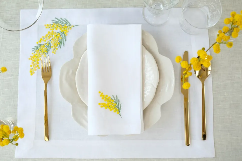 Founded in 2020 by three friends, TriChi looks to the intersection of the Mediterranean, Atlantic, and Anatolia for the inspiration for their superior clothing and homewares. Environmentally friendly manufacturing, the highest quality fabrics, and a passion for great design combine in the brand’s uniquely tasteful approach. TriChi’s placemat sets are exemplary tabletop additions, regardless of how formal or casual the affair. The Mimosa Placemat, Set of 4 present themselves in a classic white, and feature a decorative yellow flower.