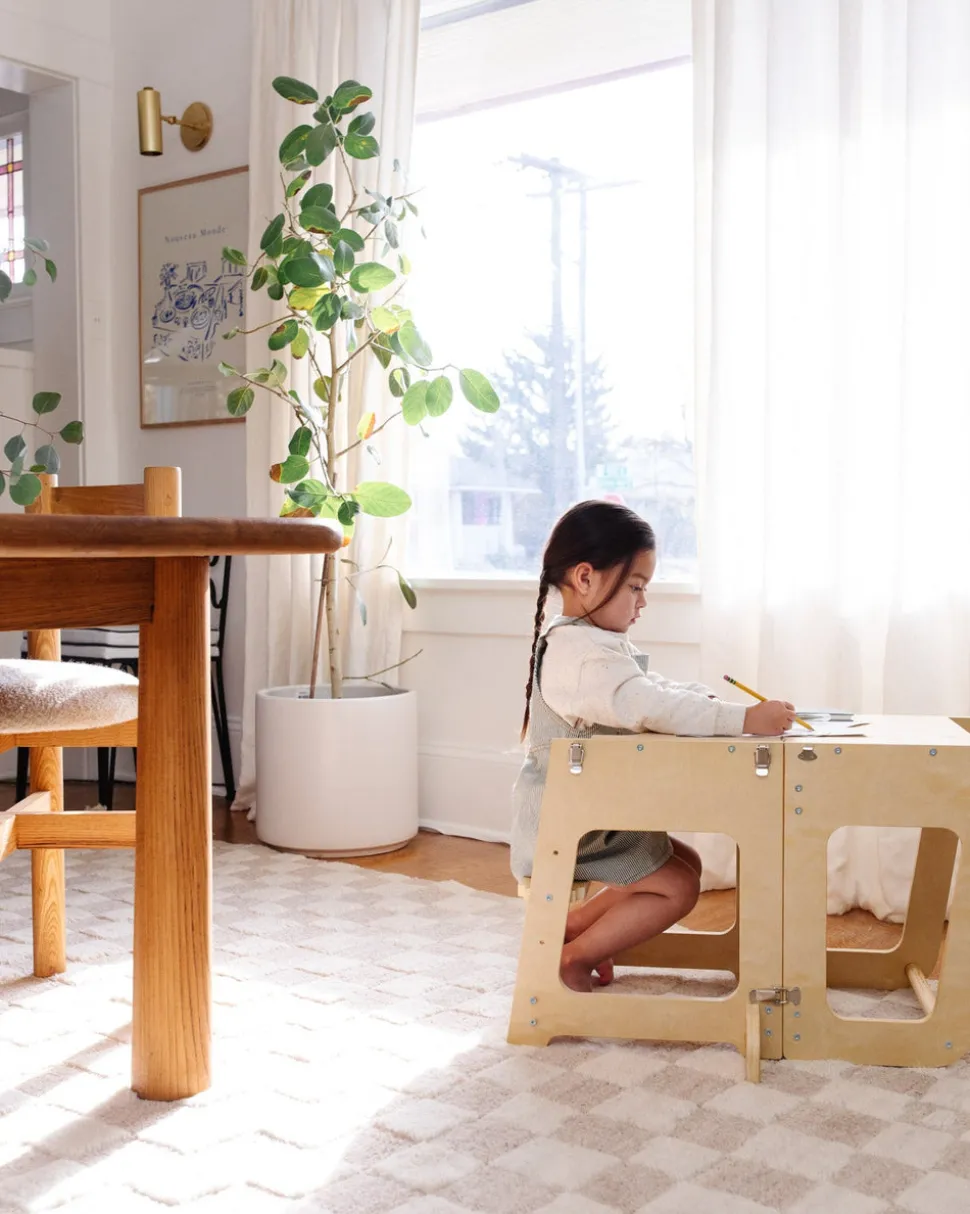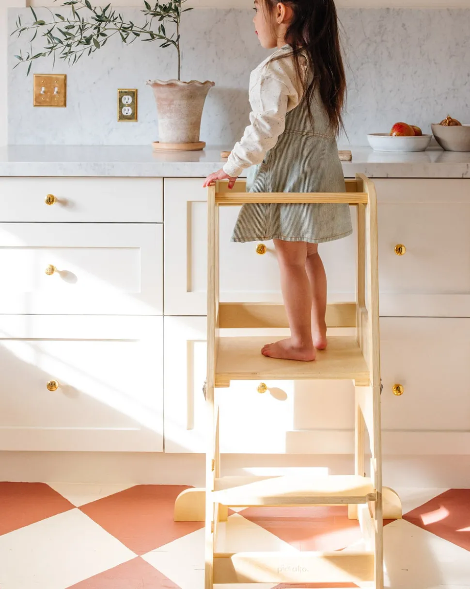 From Venice, California Piccalio creates modern, unique wooden products that inspire kids to think for themselves and to play with endless curiosity. With safety, slow living, and nature at its heart, Piccalio employs European design and small-batch manufacturing to create sustainable playthings that can be passed from between kids, and generations. Step right up! The Mini Chef Convertible Helper Tower gives your little one the independence to safely reach kitchen countertops, bathroom sinks, and any too-tall-to-access places. We love it for helping out at meal time, and once you’ve finished preparing, just like that the tower transforms into a sturdy table and stool for eating, playing, and enjoying.