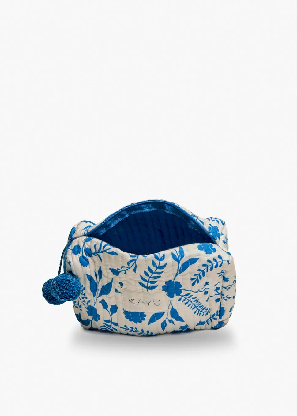 Designer Jamie Lim grew up in South East Asia, surrounded by the batik kaftans worn by her mother, and handmade rattan dining chairs. As she witnessed these artisanal goods be replaced by mass produced synthetics, Jamie created Kayu as a means to offer timeless personal and home accessories, made with the finest natural materials, and preserve indigenous craft. Hand-block printed on quilted cotton, with an exclusive floral design, the Mini Clover Travel Case Bag are ideal for stashing your beauty essentials, while the zip top keeps everything both secure and easily accessible. And we love the pom poms, for a touch of whimsy.