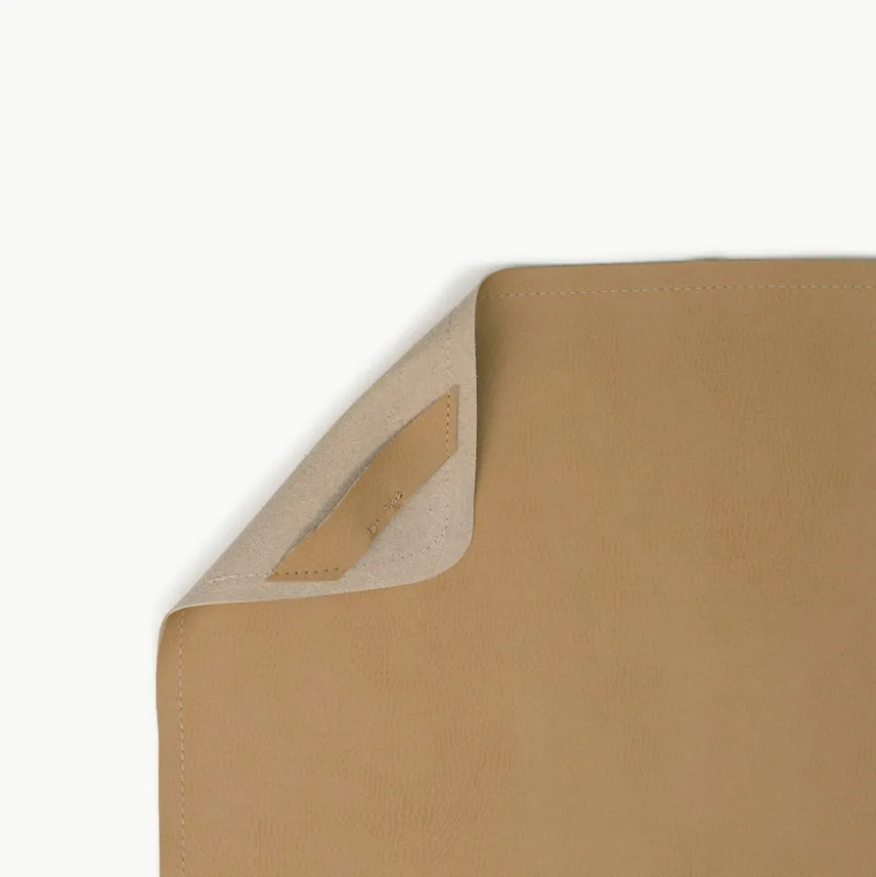Premium look and feel. Wipeable and water-resistant. Folds compactly for easy storage and transportation. Ethically and responsibly made. Free of toxins, PVC, phthalates, and lead. CPSIA compliant. Bonded leather mats are backed with flocked suede, which contains 28% genuine leather.