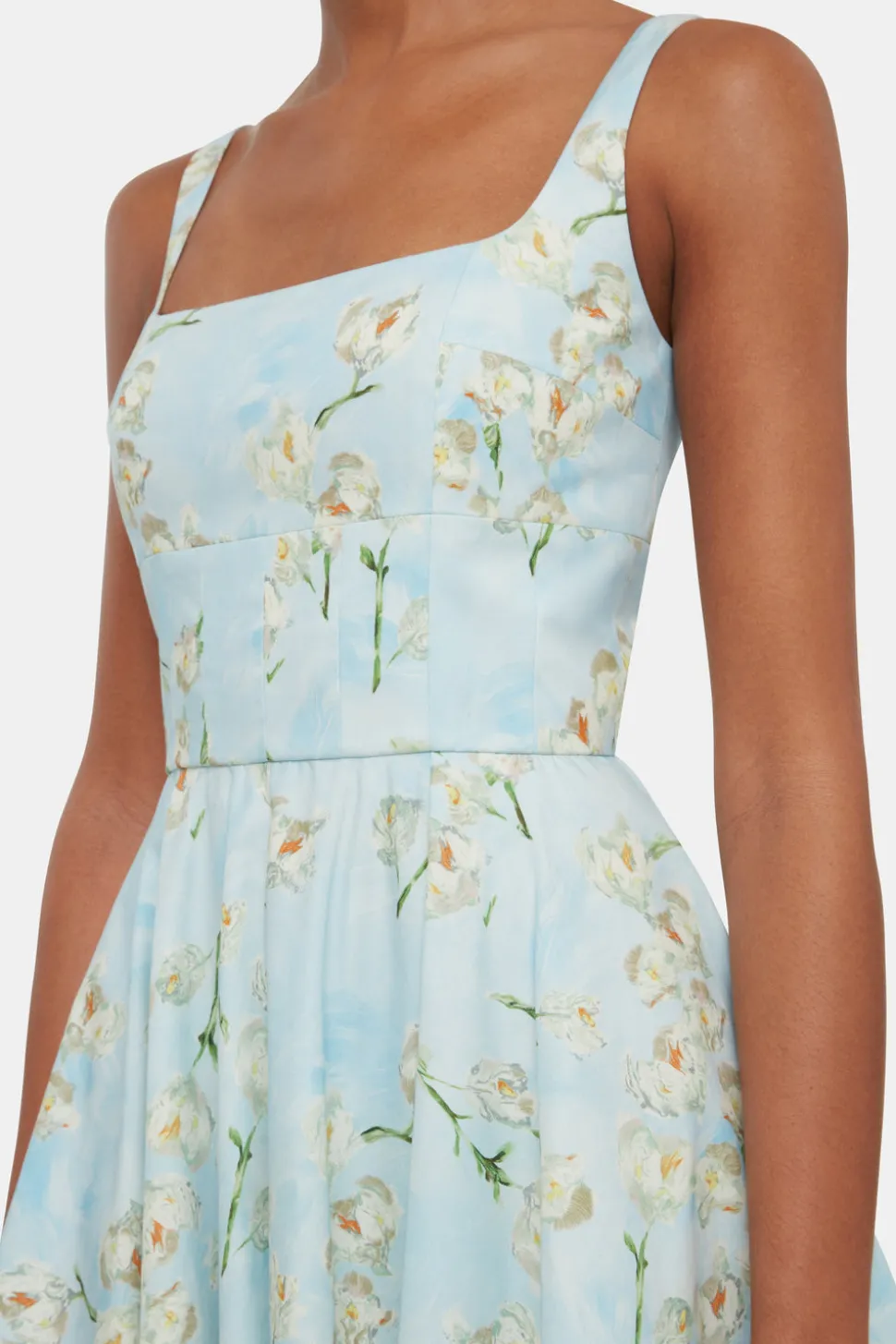 Emilia Wickstead is the epitome of modern femininity. Established in the U.K. in 2008, the ready-to-wear designer is known for impeccable tailoring, bold color, and timeless quality. The Mini Mona Dress with Little Lillie’s on Blue Cotton is crafted from lightweight blue cotton and printed with delicate lily motifs. Designed with a structured square neckline, fitted bodice, and a softly flared skirt, it creates a flattering, feminine silhouette. An effortless choice for warm-weather occasions.