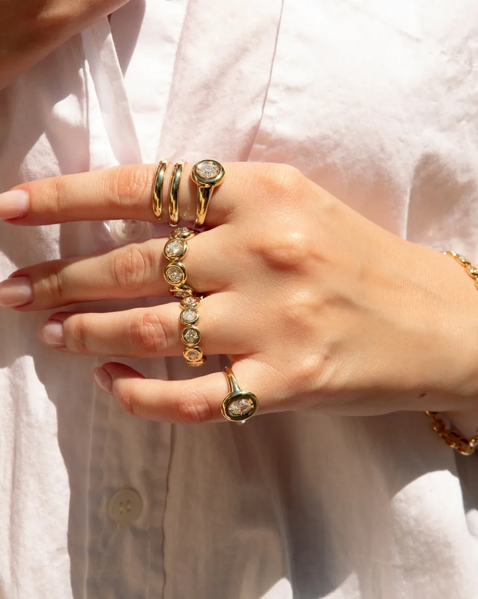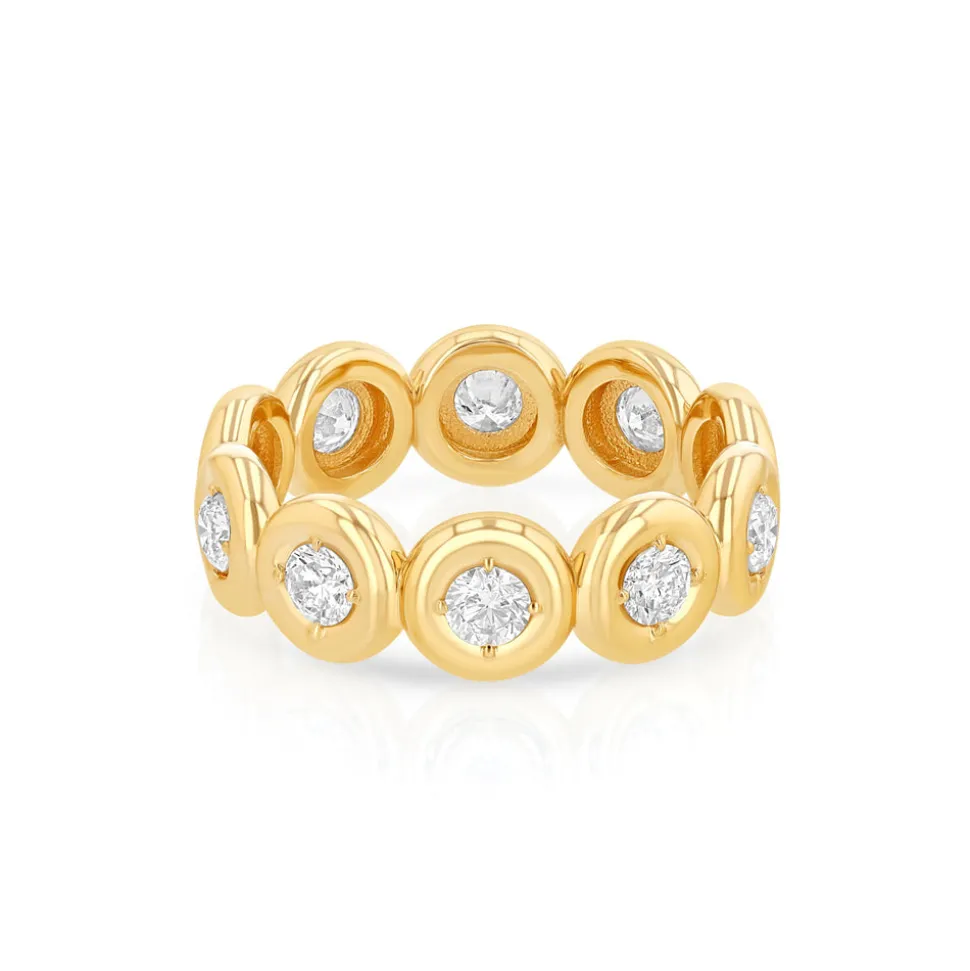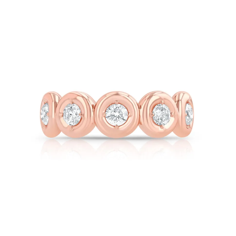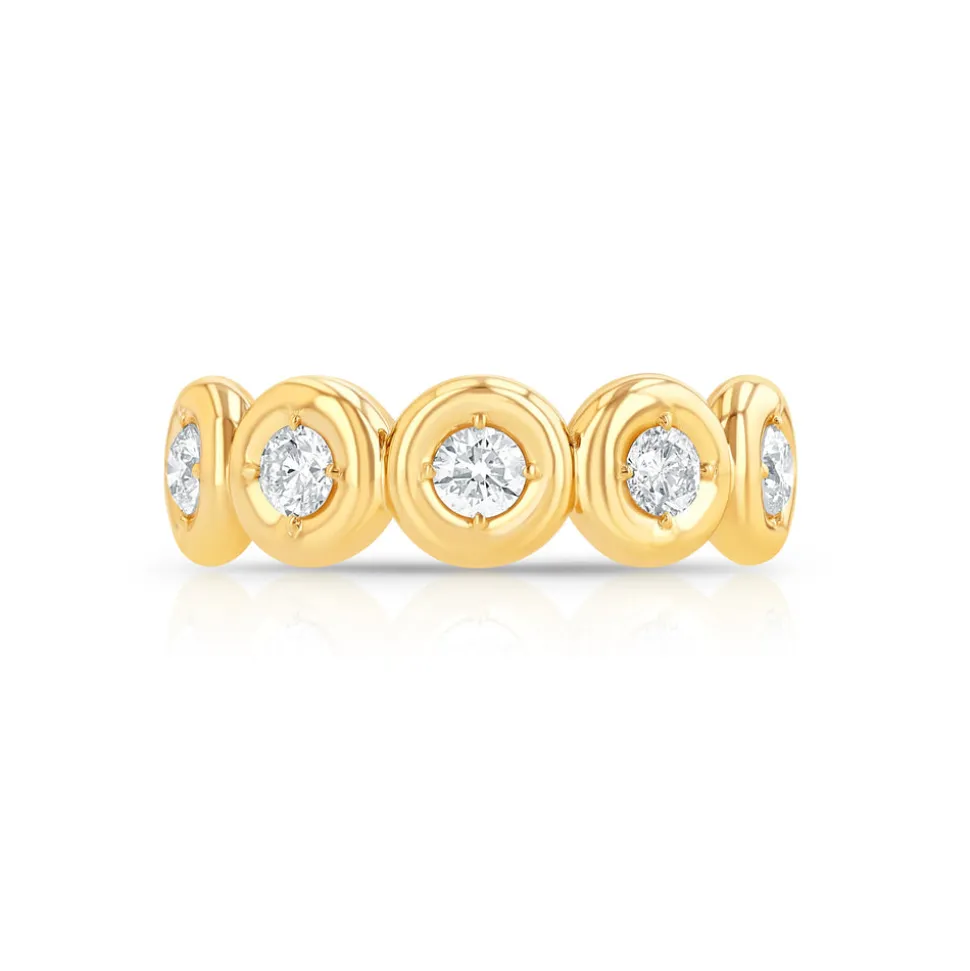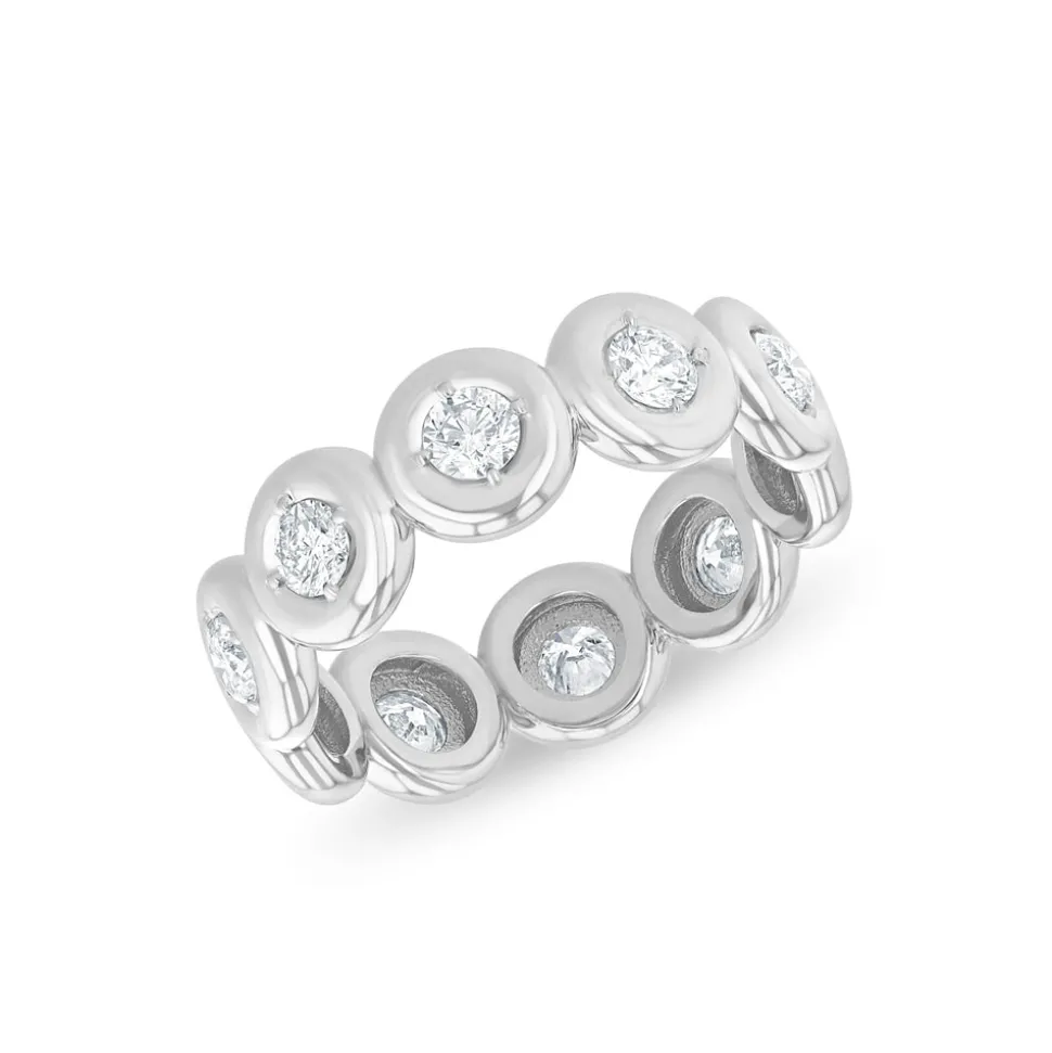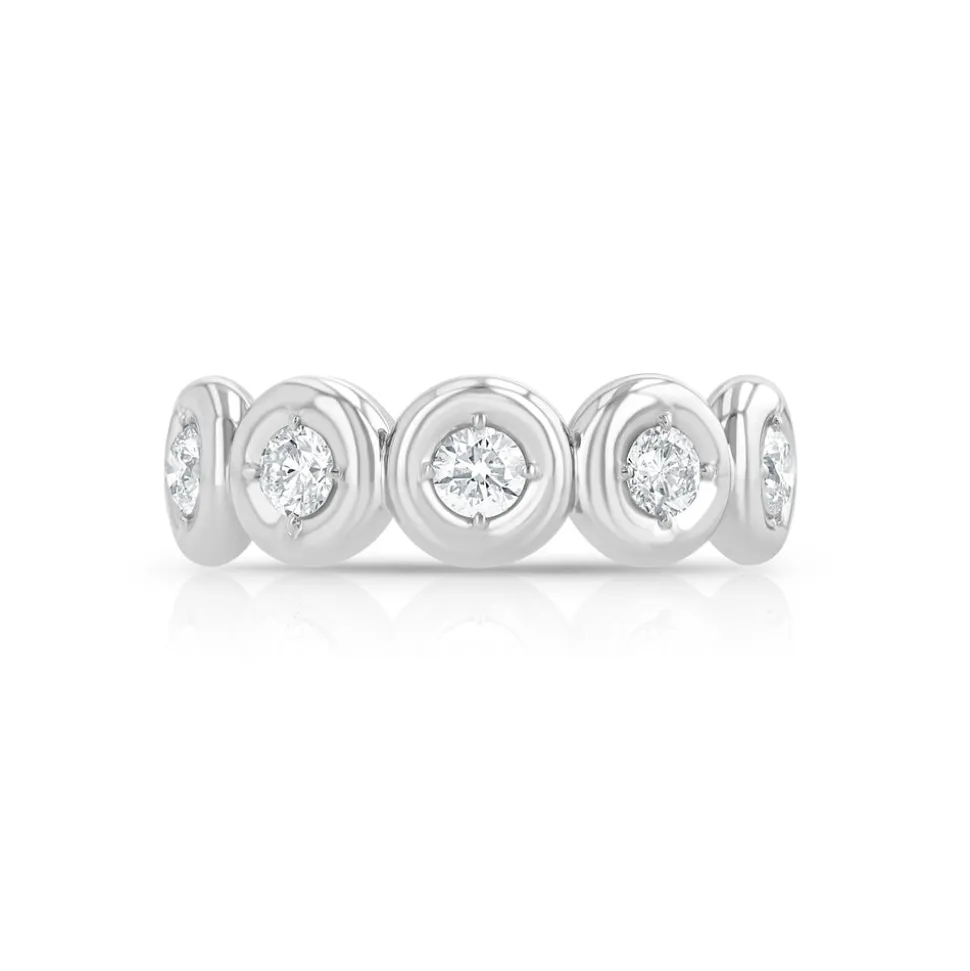 within the brand’s puffy bezel setting, the Mini Orb Eternity Band brings a gentle dignity with its shimmering beauty.