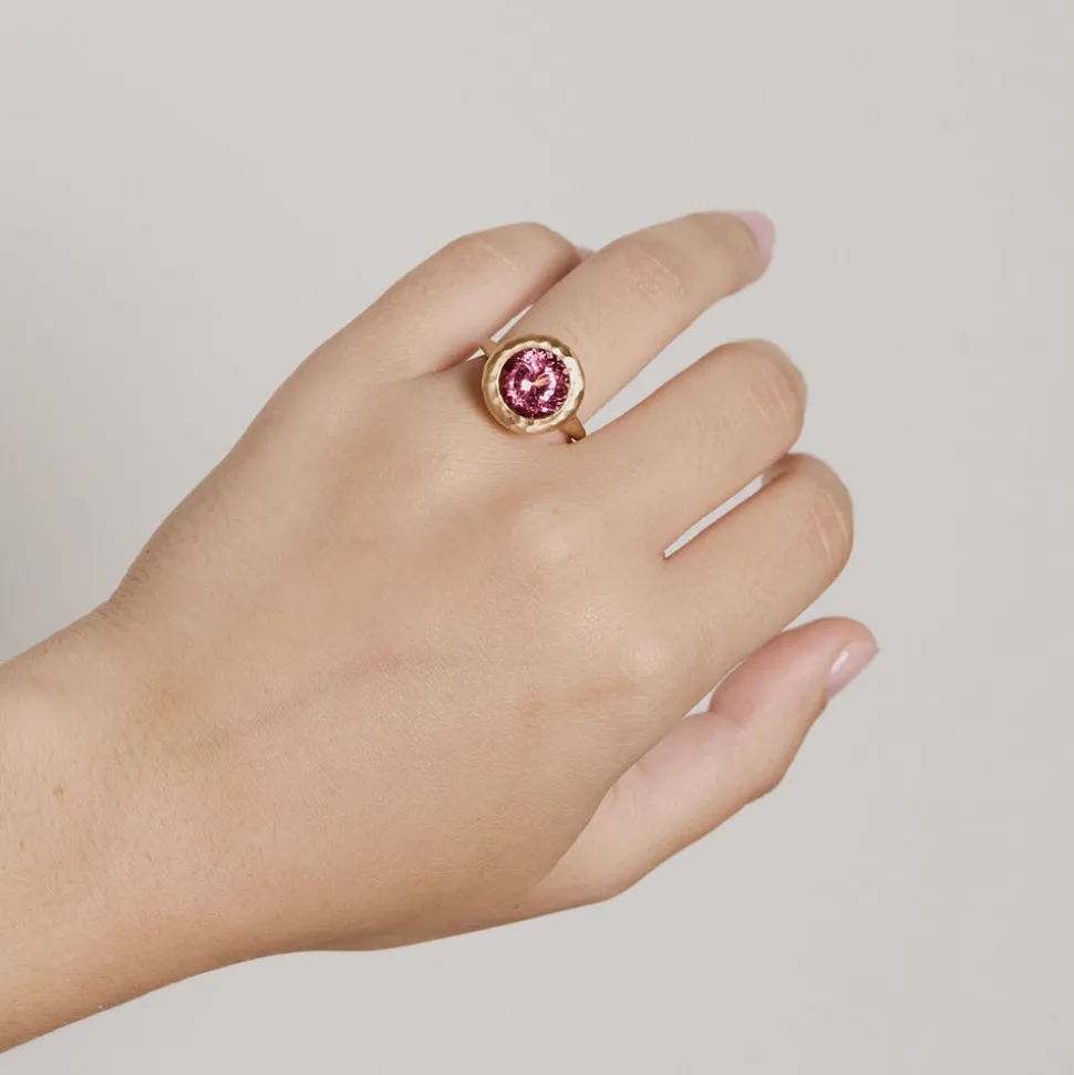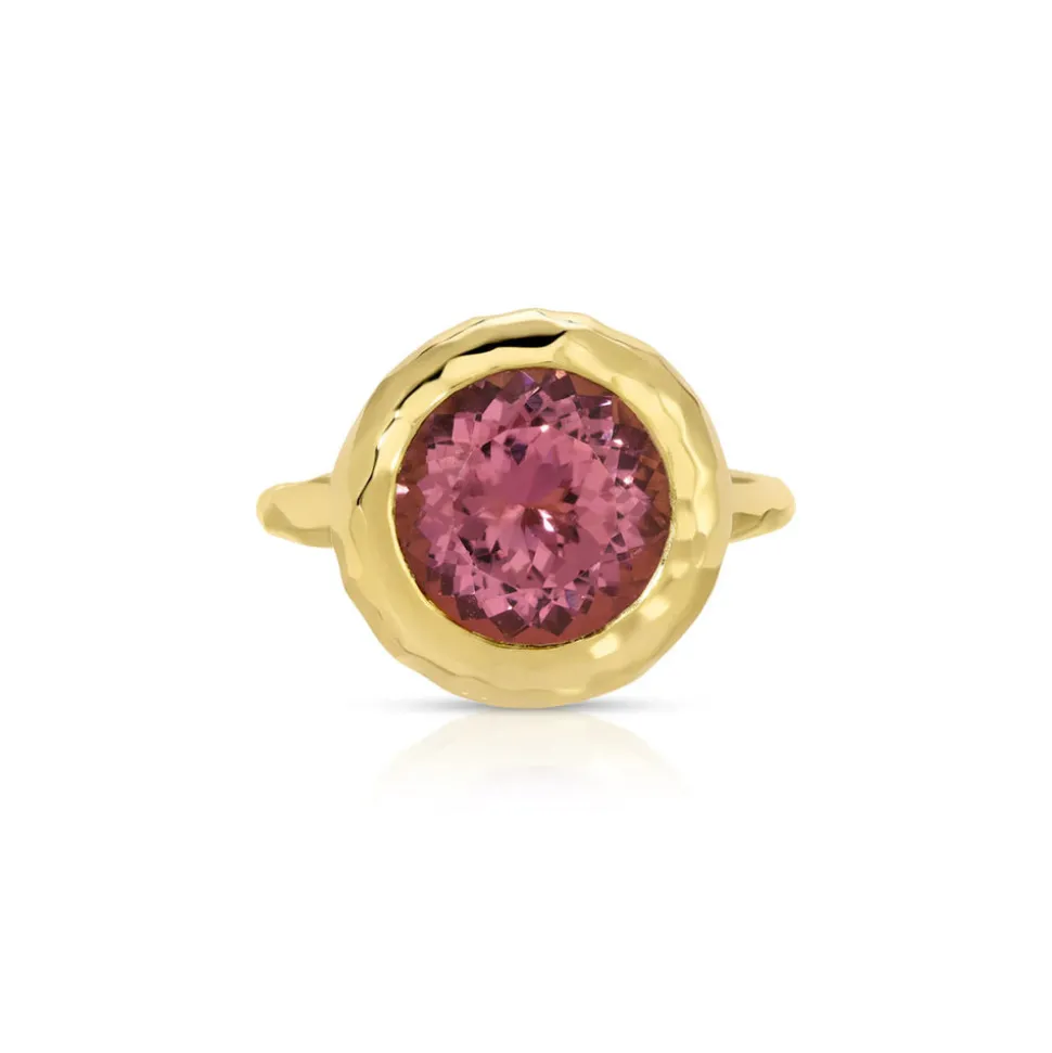 18K yellow gold. Pink tourmaline, 3.98 ct. Signature hammered finish.