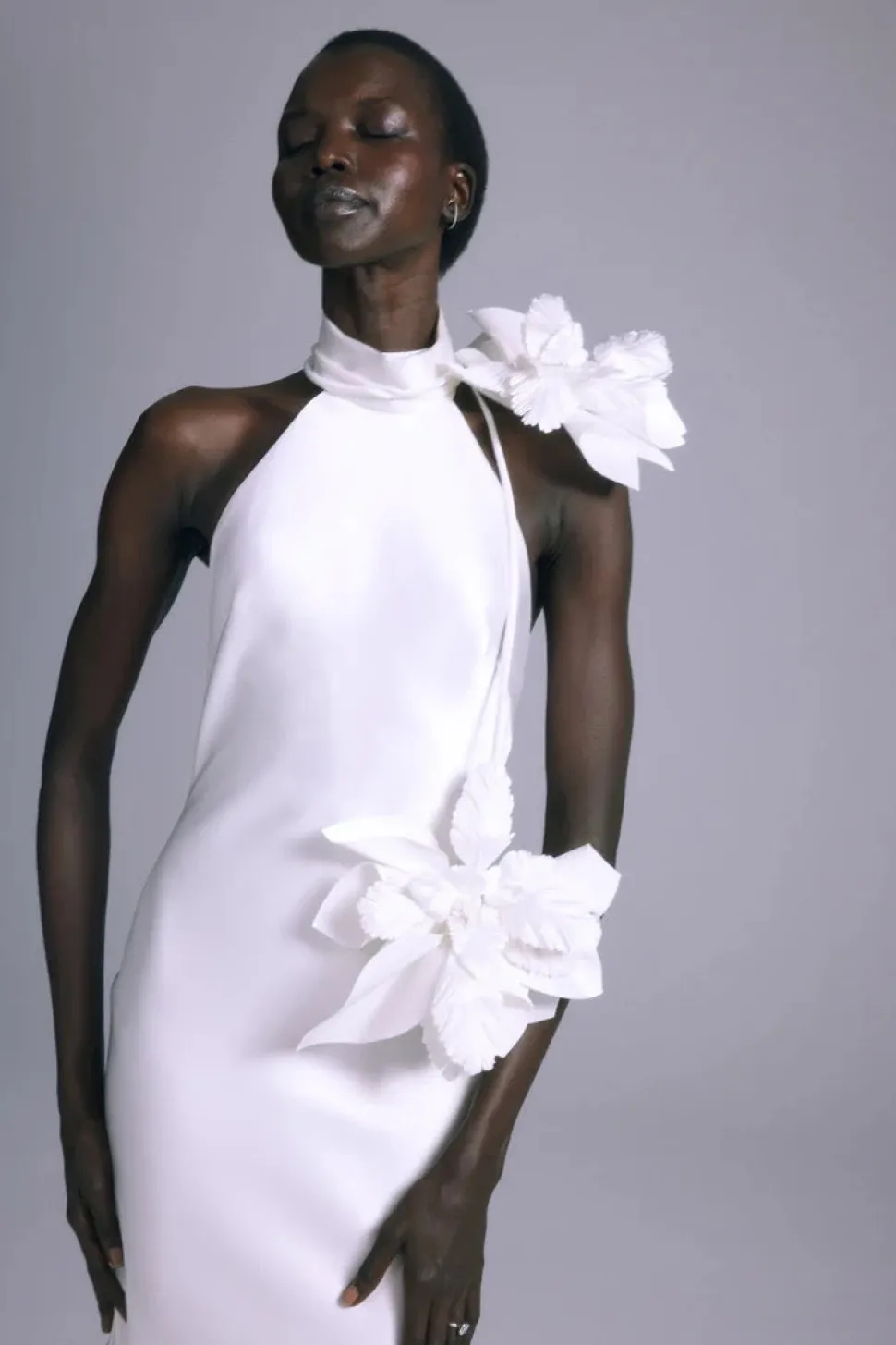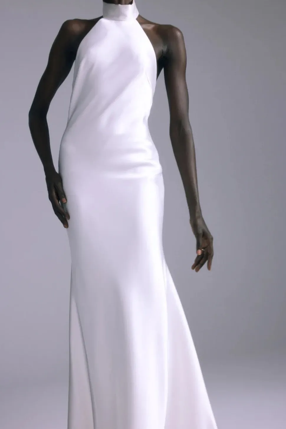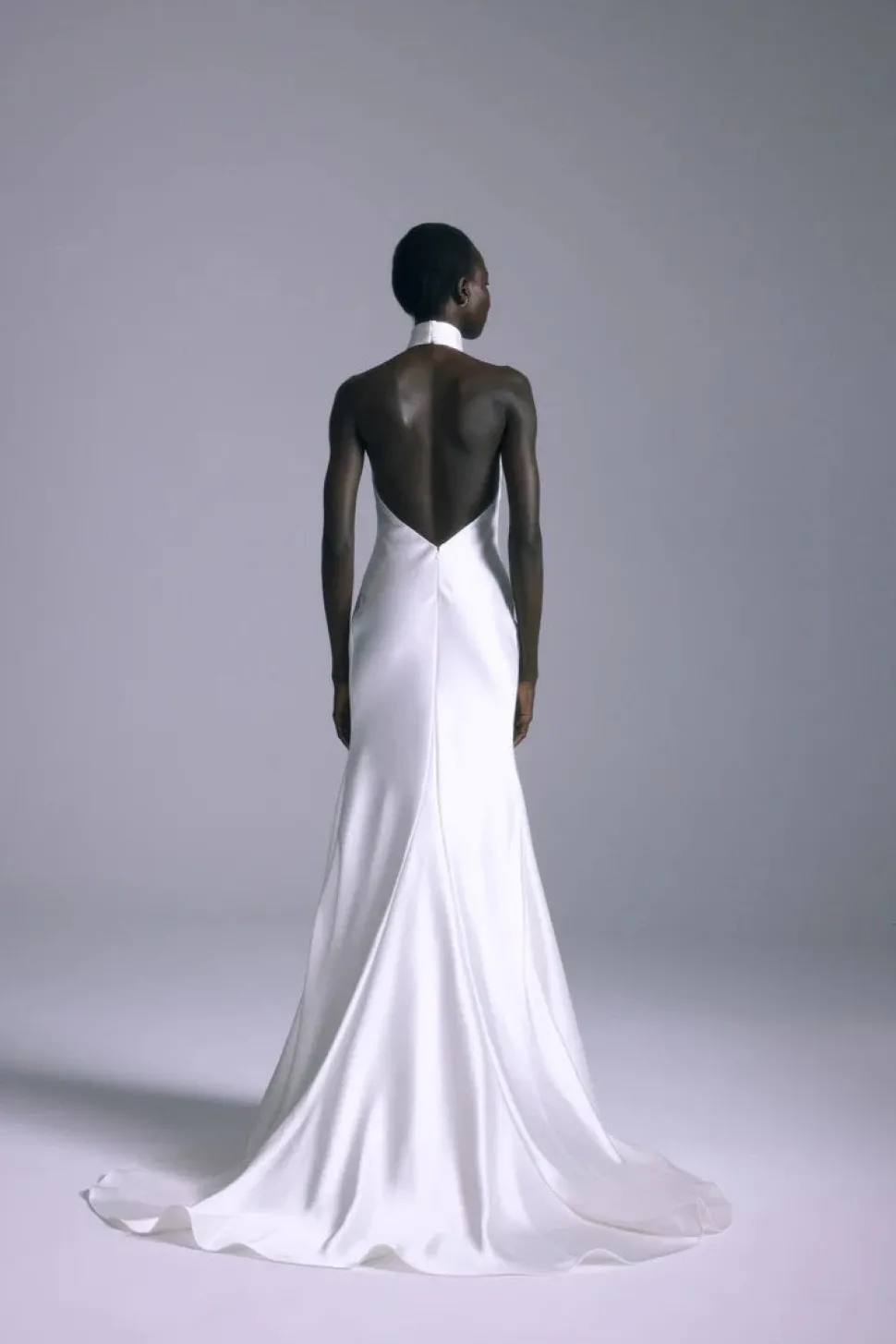 Over three decades ago, Ethiopian-born Amsale Aberra began crafting modern, personalized wedding dresses, beginning with her own. Today, her distinct bridal gowns—handmade with couture techniques in AMSALE’s New York City atelier—share their tasteful femininity, unstated glamour and attention to detail with sophisticated women the world over. The Mirai Gown is an Italian liquid satin dress with a halter neckline.