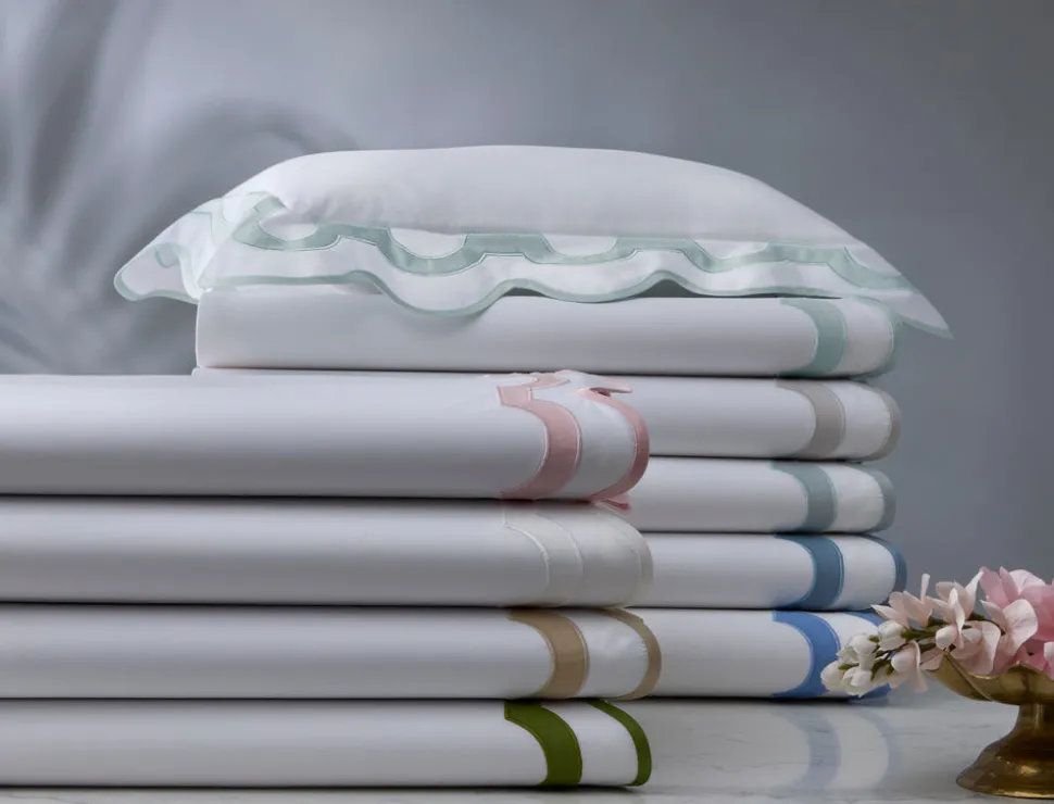 For nearly 100 years and three generations, Matouk has handcrafted luxury linens from the world‚Äôs finest materials. Their dedicated artisans in Fall River, Massachusetts are committed to creating the highest quality, most-loved bed, bath, and table linens for your home.¬†Inspired by the a leisurely stroll through¬†Palm Beach, the¬†trim on the¬†Mirasol Collection¬†recalls the arches of one of the most luxurious cities in the country. And there’s nothing more tasteful and appealing than soft, luxurious percale cotton.