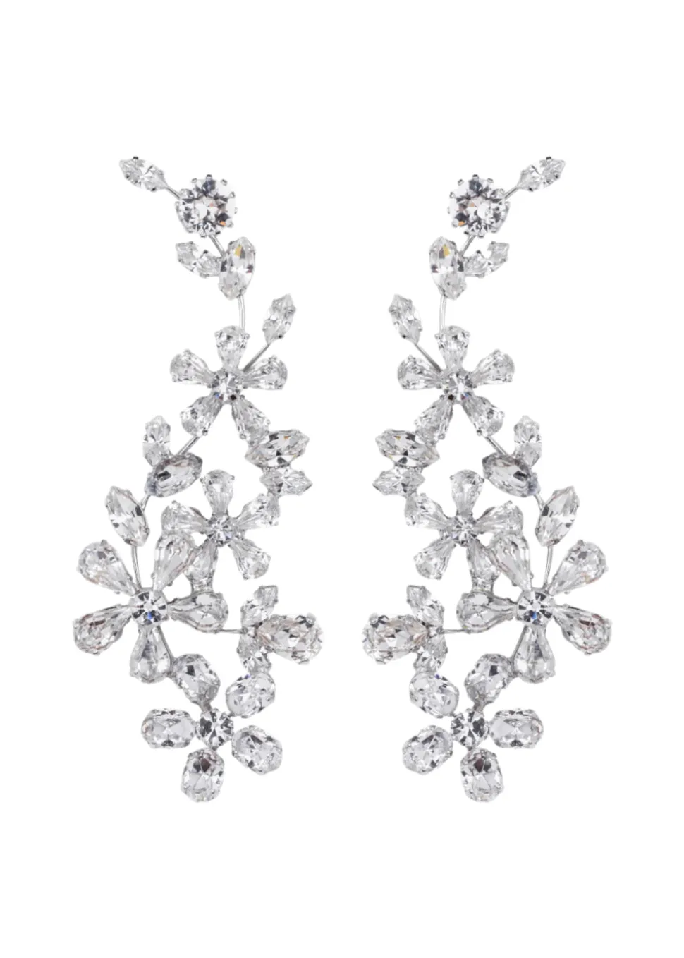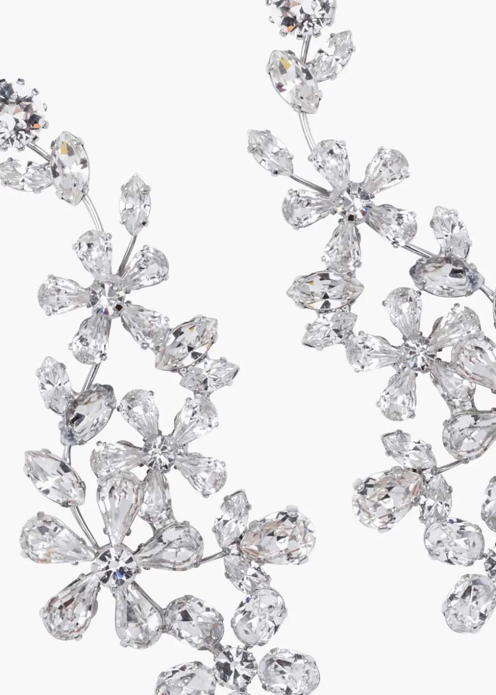 “Everything has a story to tell,” says Jennifer Behr, the founder of her namesake luxury hair accessory brand that has blossomed into one of New York City’s foremost ateliers for jewelry, as well as bridal. In every crystal, pearl, and ribbon, you’ll find the utmost quality and a sense of romance, as each piece reveals a modern interpretation of centuries-old regalia. The Mirella Earrings in Crystal are thoughtfully designed to frame the face with a swirling floral vine inspired by nature’s elegance. Handcrafted in New York, each flower is adorned with fine crystal stones that glimmer softly in candlelight. Despite their statement scale, these earrings remain lightweight thanks to meticulous handmade construction.