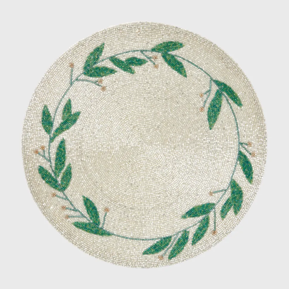 Inspired by her mother’s flare for holiday decorating, Joanna Buchanan has turned her love of travel and knowledge gleaned from twenty years in fashion retail into an eclectic line of tabletop, barware, gifts, and decor. Crafted in cotton and boasting accents that form its natural shape, the Mistletoe Hand Beaded Placemat adds some holiday delight in a traditional motif.