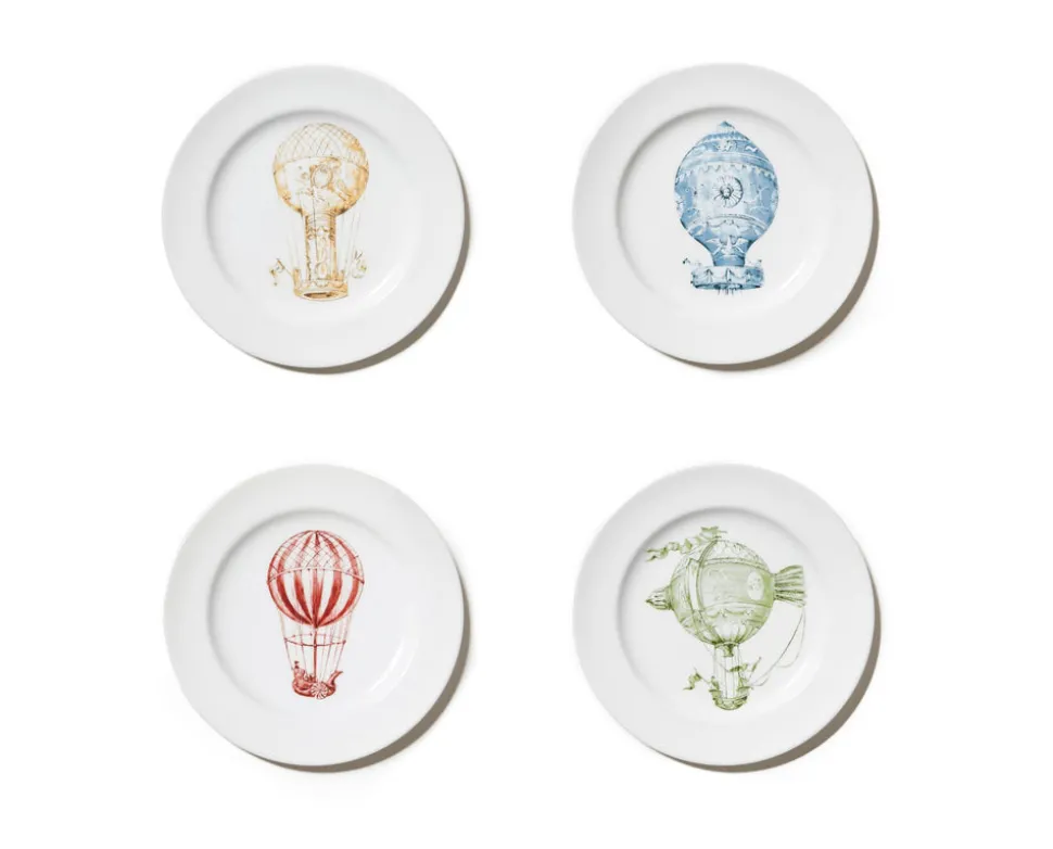 Founded by Costanza Paravicini, and taking inspiration from the classic tradition of fine Italian pottery, Laboratorio Paravicini seeks to create handmade tableware and plates as they were in long ago, but made today, for everyday use. Using a decoration technique called Gran Fuoco sulla Terraglia Bianca, the patterns under glaze emerge as uniquely bright and durable. In a testament to the romantic modes of travel from yesteryear, the Mongolfiere Single Charger features illustrated images capturing hot air balloons in flight. A delightful escape, for every meal.