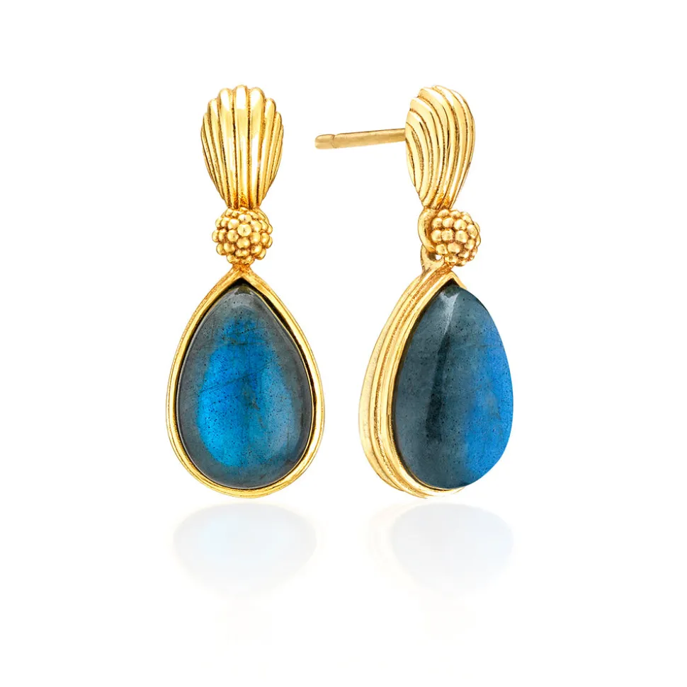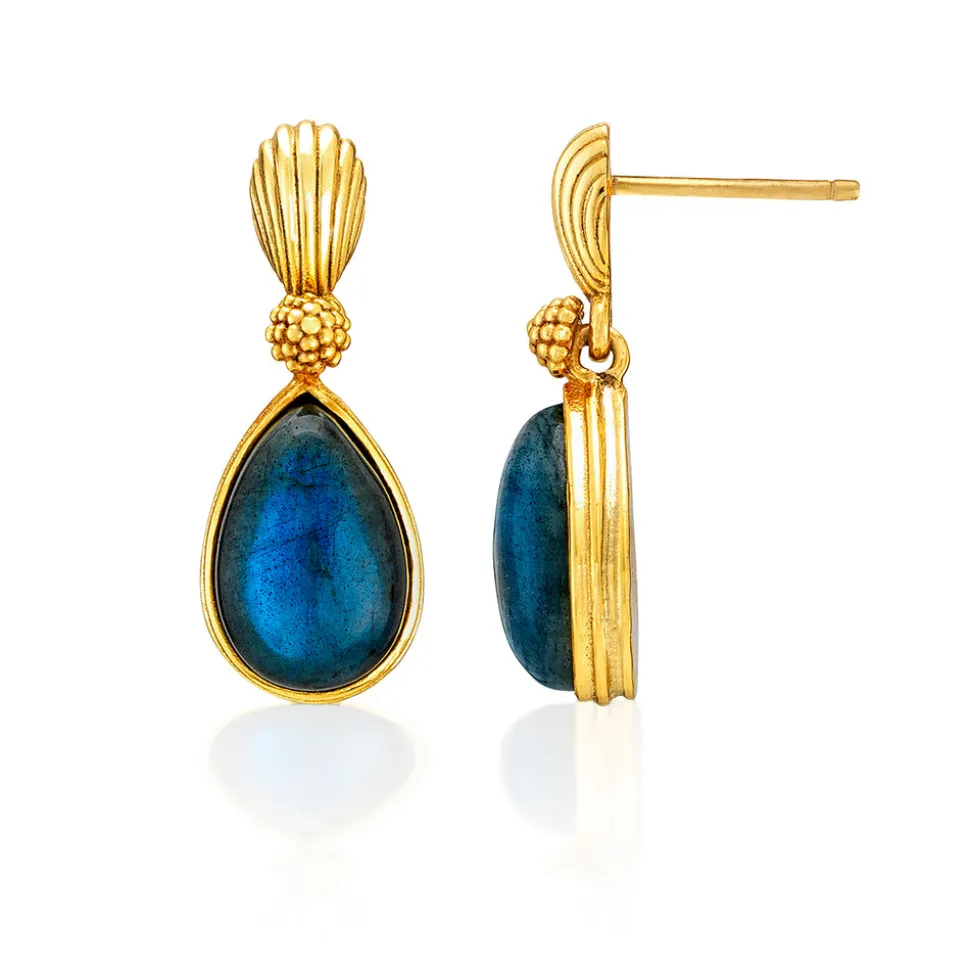 Blue labradorite, 18K gold over brass with anti-tarnish coating. Lead-free. Nickel-free.