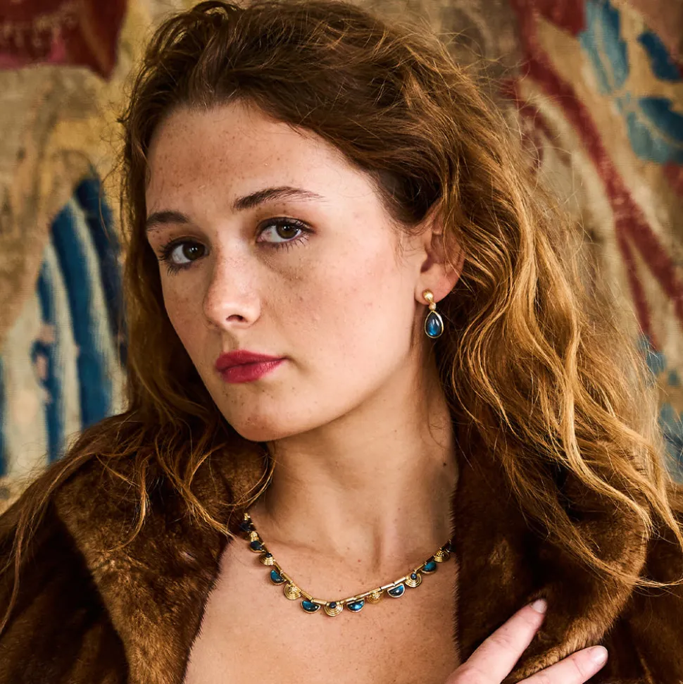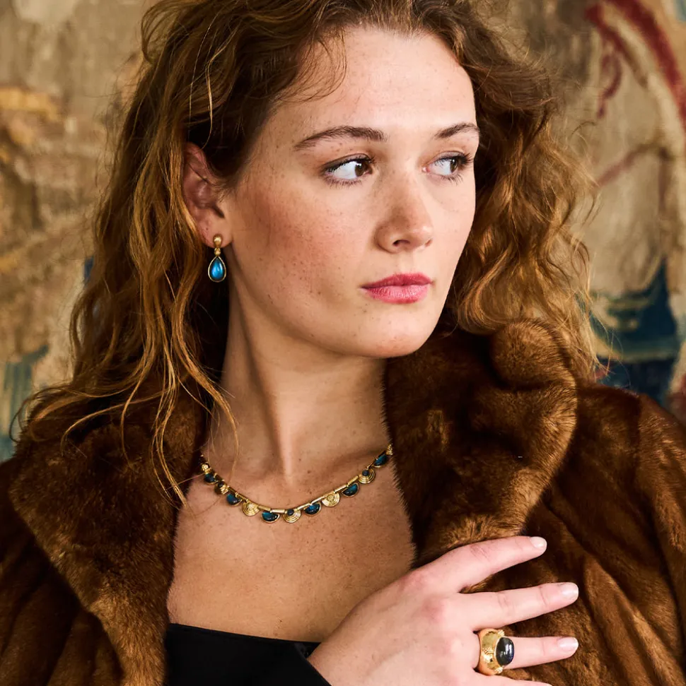 Half-Parisian, half-Texan, Capucine De Wulf’s unique upbringing was the inspiration for her namesake jewelry line. Her accessories combine French romance with an American sensibility. The Monique Gem Post Earrings in Blue Labradorite feature luminous gemstone drops that catch the light with every movement. Equally dramatic and demure, these earrings transition effortlessly from boardroom elegance to ballroom glamour.