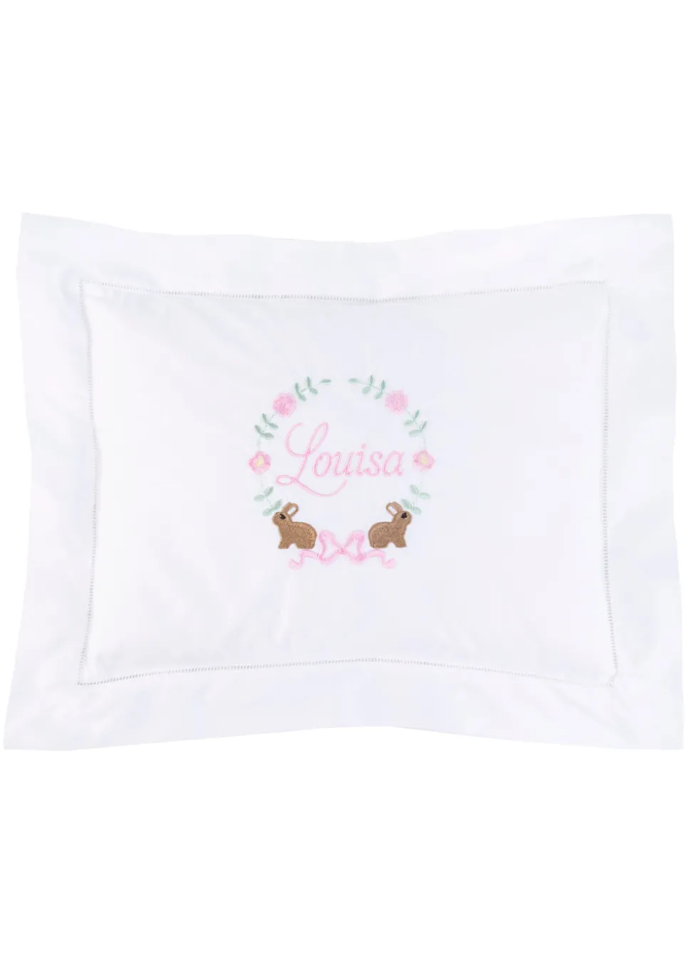 Add a touch of elegance and forever charm to your little one’s room with the Monogram Boudoir Pillow. It will look perfect on the bed, or the chair next to it, where you read them their favorite stories—and with their name embroidered in fine sateen, they’ll be over the moon as well. Add your monogram for that perfect, personal touch.
