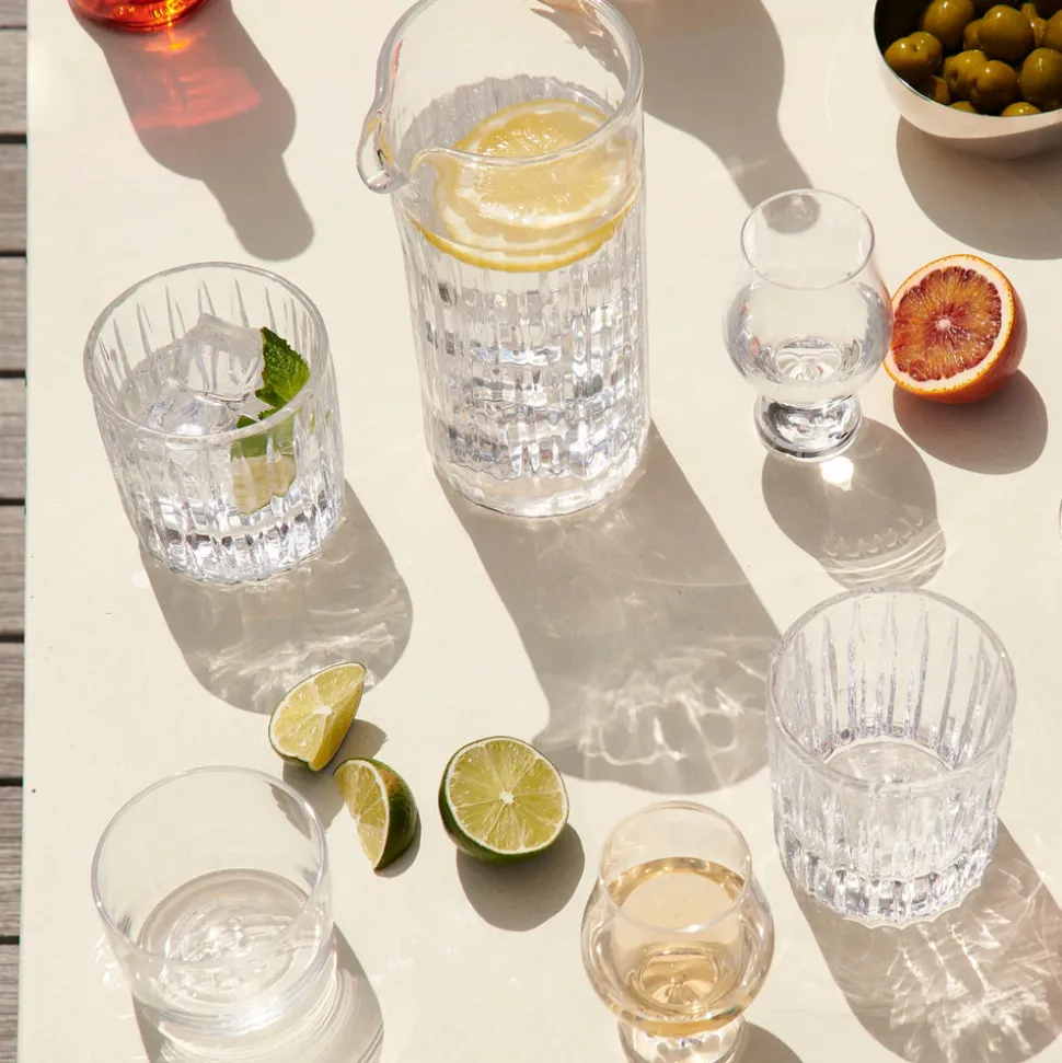 Handcrafted in the United States using centuries-old glassblowing and pottery techniques, Simon Pearce designs timeless pieces that celebrate form, function, and the quiet beauty of everyday moments. Inspired by the fluting of classical architecture, the Montpelier Bar Pitcher features dimensional ridges that offer both visual depth and a confident grip. Made from handblown glass with the appearance of cut crystal, it brings refined texture and everyday durability to the bar or table.