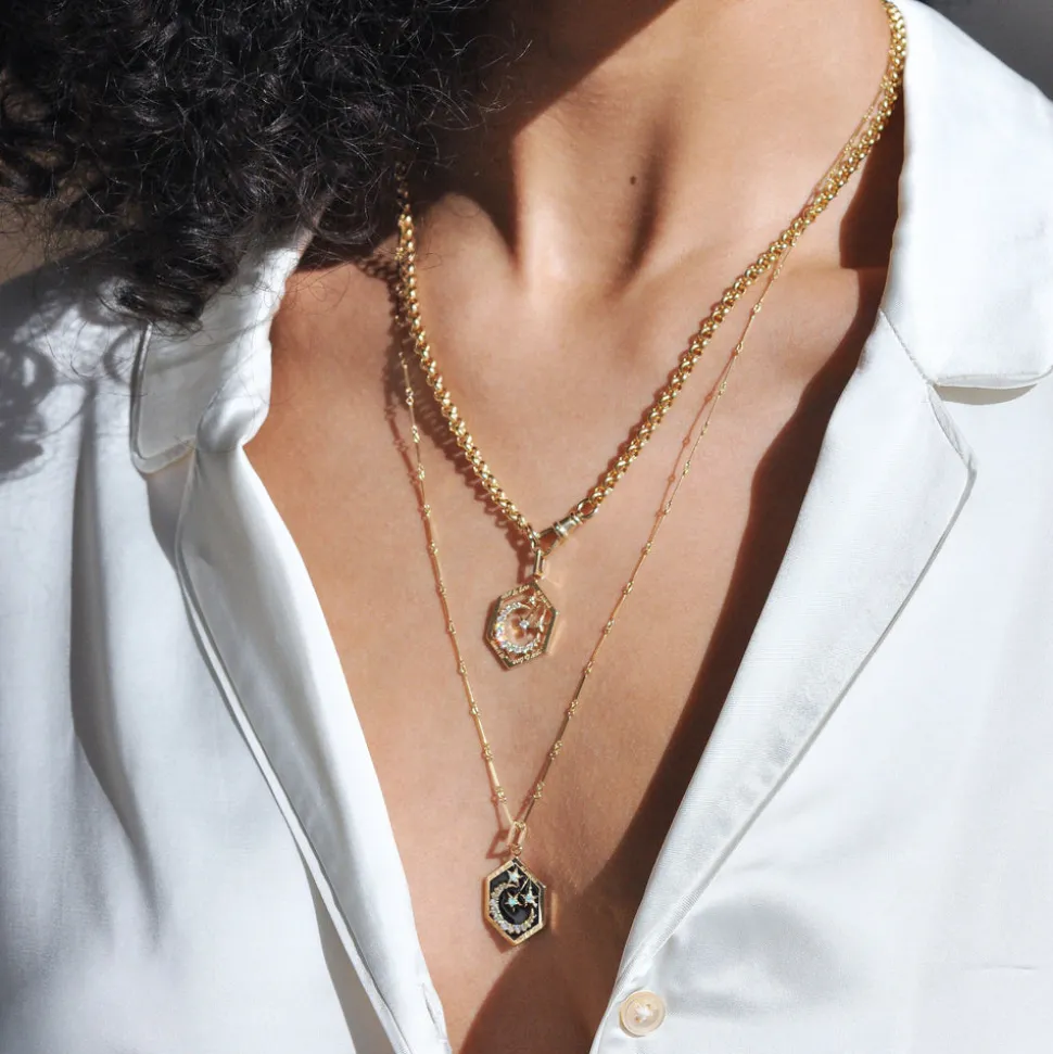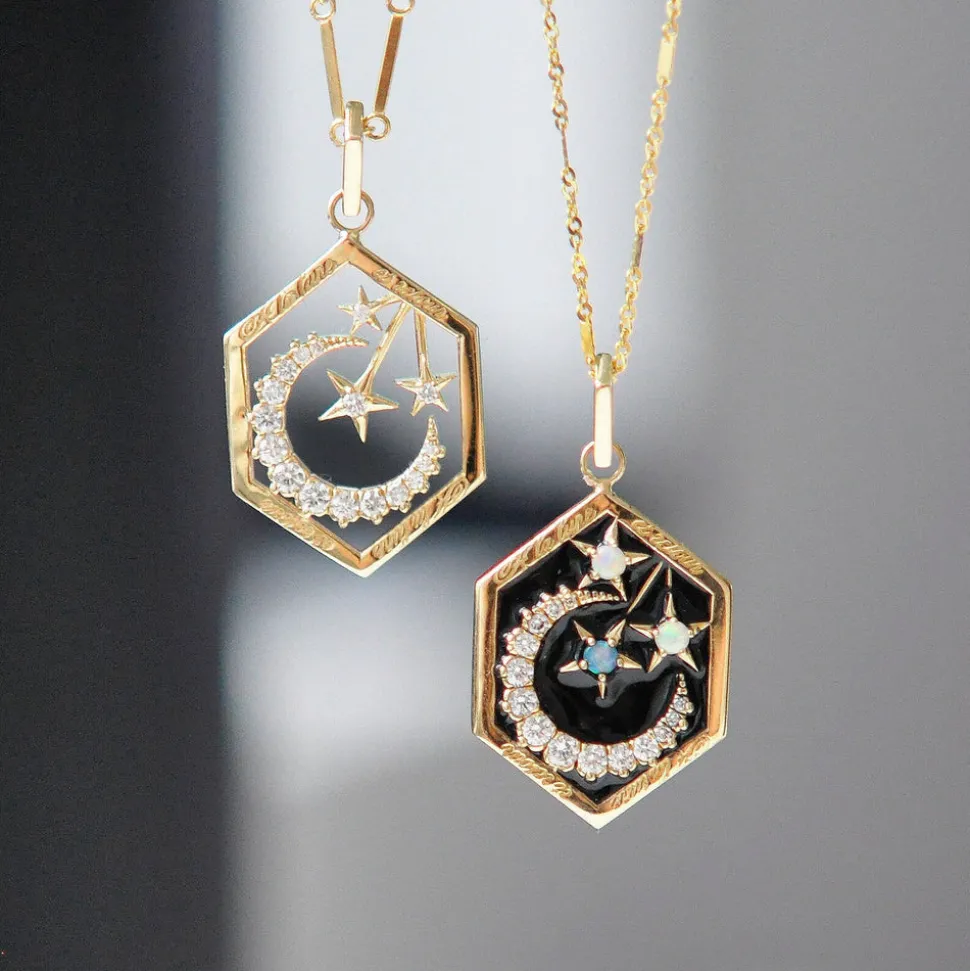 From her studio in New York City, Ashley Zhang designs one-of-a-kind fine jewelry that will last a lifetime. The Moon Love Token draws inspiration from the French charms of the 1960s. The French statement shares an earnest message from the pendant to its beholder, saying, “To the moon.” A gift for a loved one–or for yourself, the charm is a celestial reminder of enduring love.