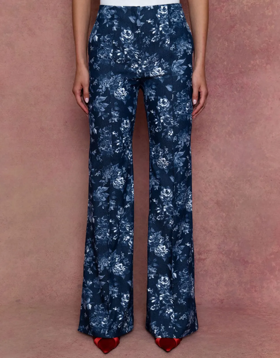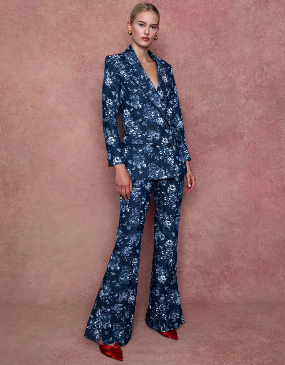 Inspired by the great art museums of the world, Carmen Borgonovo and Joana de Noronha use romantic silhouettes and surreal, bespoke prints, to create dresses that not only empower women, but transport them. These versatile, tailored pieces will bring joy to your wardrobe, and glamour to your world. Tried and tested for two seasons, the Morgan trouser has earned its place as a must-have wardrobe staple with Denim in Floral Navy. With its impeccable fit and slightly flared silhouette, this trouser evokes the bold, free-spirited style of the ’70s rock and roll scene, while its tailored construction elevates the look to something truly refined. Flattering and comfortable, the Morgan fits all shapes and sizes, making it a versatile choice for every wardrobe. For a laid-back look, pair the Morgan trousers with a classic button-down denim shirt or a simple tee.