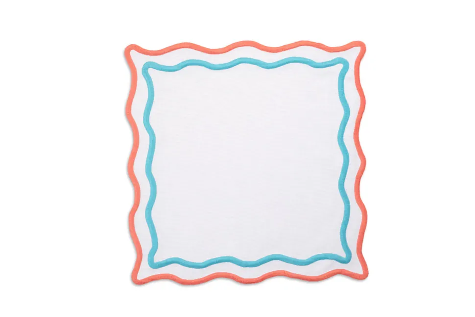 To enliven your tabletop and the conversation, look to Loulou La Dune. Based in Istanbul, Aylin Cinarli Duna’s architectural background provides the outlook for the brand’s luxury linens and beautiful hand embroidery. Her embrace of unique artisanship, and only the finest materials, adds elements refined craftsmanship to your bedroom, bathroom, kitchen and living spaces. Ideal for family gatherings and dinner parties, the Morgan Placemat and Napkin Set in Turquoise features a gently scalloped edge, and delightful double layer of trim in subtle pastels. Works year-round, indoors and out.