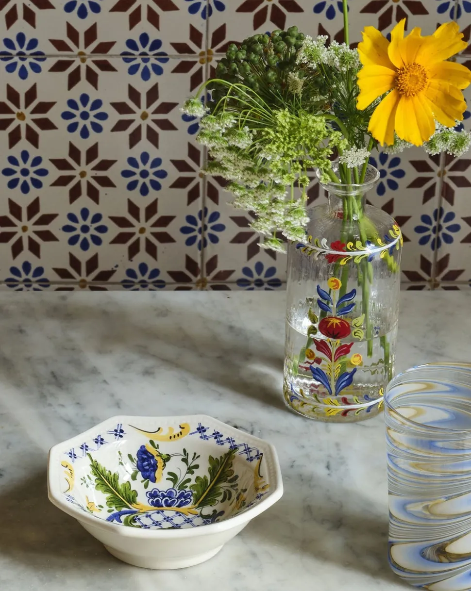 Inspired by the pages of Cabana—a magazine for a new generation of globetrotters—Casa Cabana’s homewares both explore and expand the worlds we share with our interiors. Designed in-house and hand crafted by artisans the world over, each piece feels unique, collectible, and at once part of your home. The charming Murano Gulistan Hand-Painted Oil Bottles Multicolor have been reimagined in soft, pastel tones to nod to the joys of spring and new beginnings. Each one is hand-blown from the finest Venetian glass, and hand-painted with intricately detailed floral motifs that recall patterns on vintage textiles. Complete with a bottle stopper, they can be used to serve olive oil, or double up as a bud vase for fresh flowers.