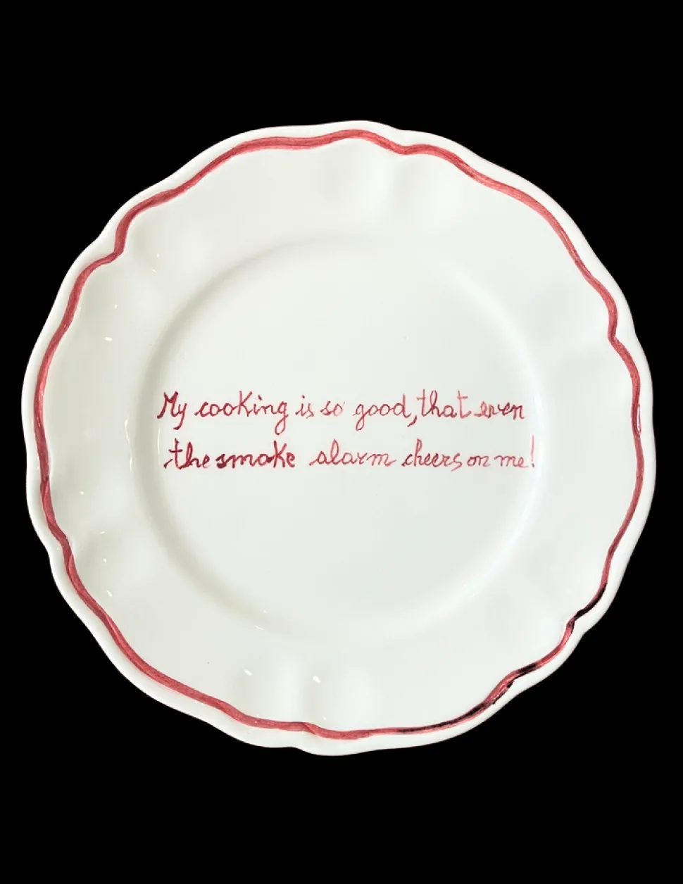 London-based Sveva Clavarino, whose Wellness Reporter platform offers everything from luxury trips to natural skincare products, curates Sveva’s Home from her experiences traveling the globe. The refinement of her handmade, artisanal ceramics and tabletop items is balanced by cheeky expressions, guaranteed to delight your guests. Individually personalized, the My Cooking is So Good, That Even the Smoke Alarm Cheers Me On! Scalloped Plate, Set of 6 lays the table with a wink and a nod to the preparer of the feast.