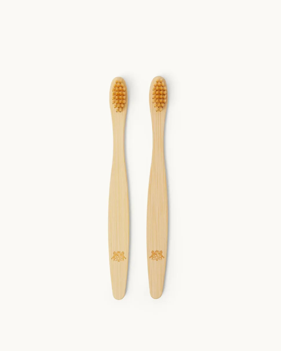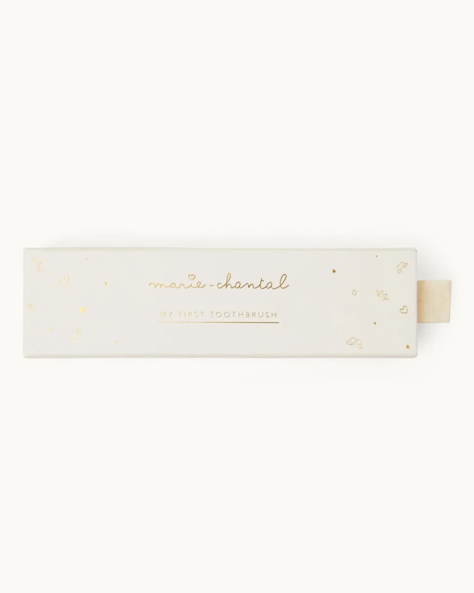 Princess Marie-Chantal of Greece’s eponymous label is known internationally for its unmatched style and the quality of materials—like their organic, hand-picked Pima cotton—which lies at the heart of their baby essentials and contemporary children’s clothing. Celebrate milestone moments with Marie-Chantal. My First Toothbrush features a set of two toothbrushes, engraved with a signature heritage crest. Made from bamboo with a soft bristle brush, this brush is gentle to even the tiniest of teeth.