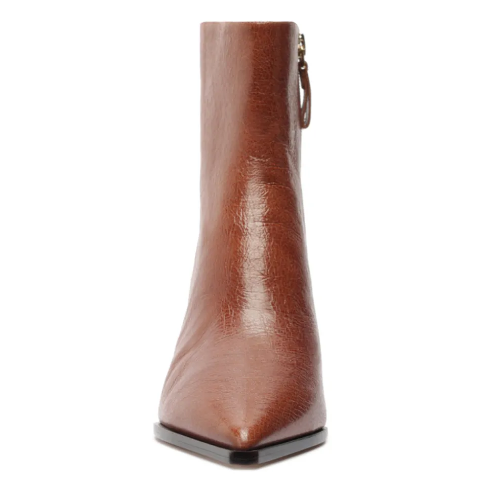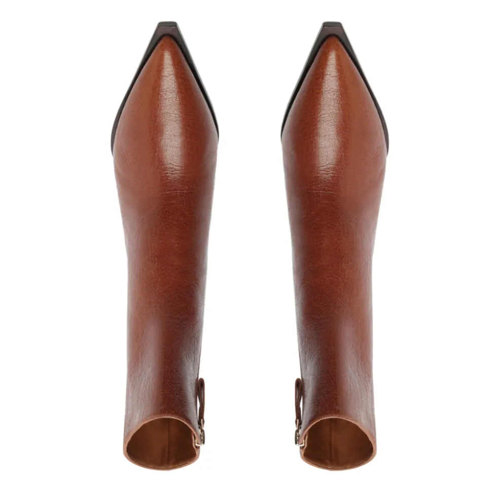 Leather upper. Leather sole. 2″ sculptural heel. Pointed toe.