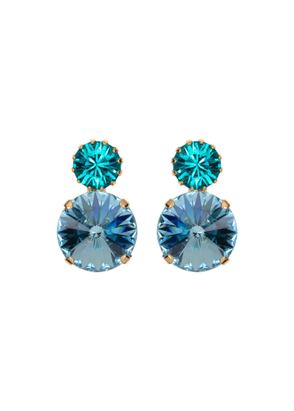 The Myrla Earrings in Surf are made by hand in New York from 18K gold or rhodium plated brass and crystal. They have a surgical-steel post, are nickel-free, and safe for sensitive skin.