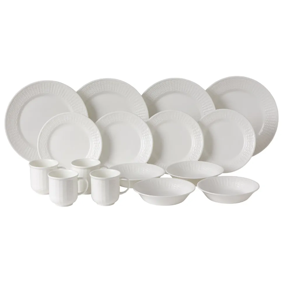 For over 260 years, Wedgwood has produced timeless, eclectic stoneware and china that has graced the tabletops of kings, queens, and some of the finest dining rooms in the world. From its factory in Barlaston, England, the brand’s signature dishware and household items are thrown, modeled and decorated by artisans who spend a lifetime mastering their craft. Inspired by the baskets for which Nantucket, Massachusetts, became world famous in the 19th Century, the Nantucket Basket collection mirrors the elegant weaving patterns in its embossed details. The Nantucket Basket 16-Piece Set is a perfect starter set, featuring four dinner plates, salad plates, cereal bowls, and mugs.