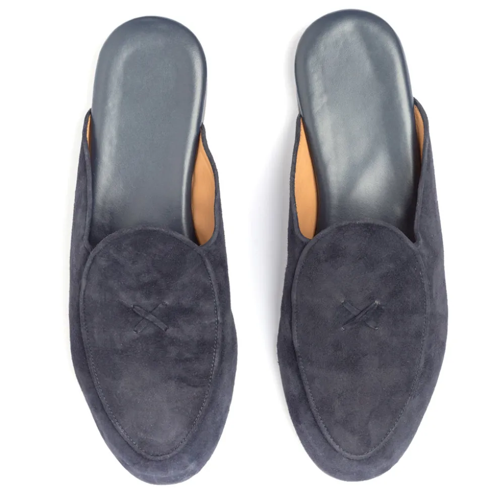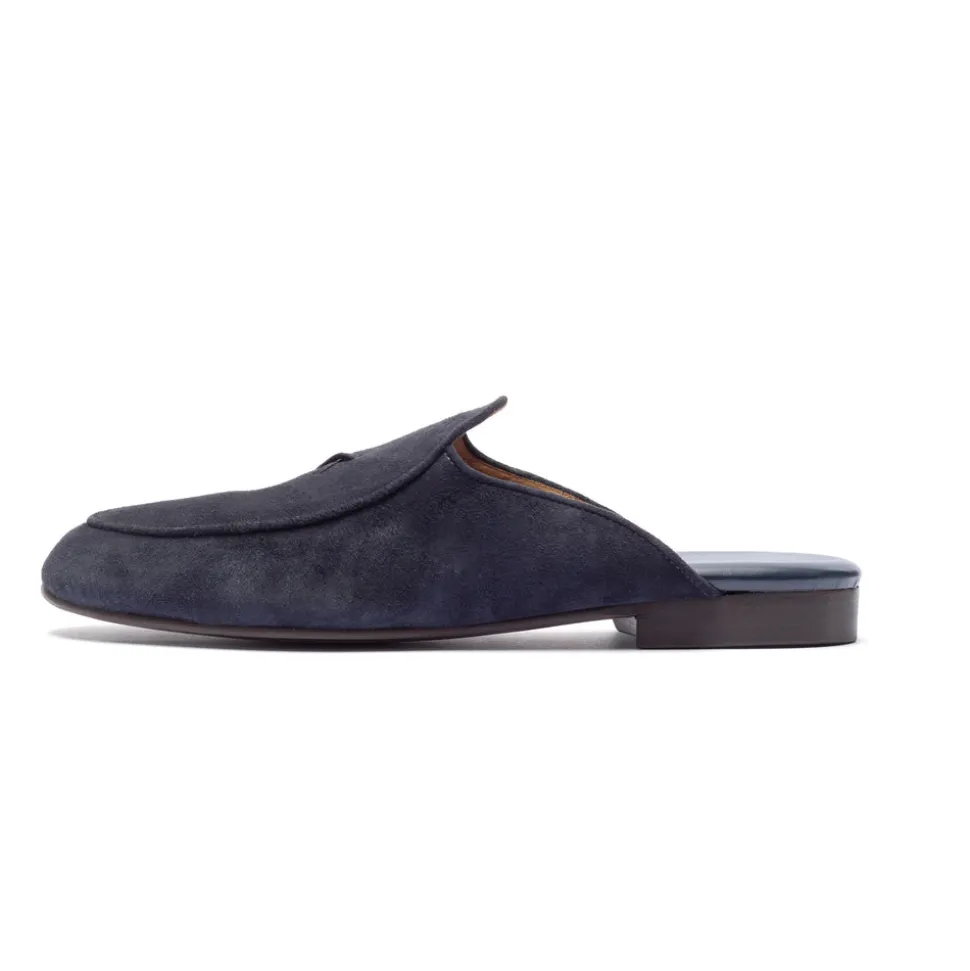 Handmade in Italy. Hand-stitched premium Italian leather and suede upper construction. Leather lining and extra soft cushioned leather footbed for ultimate comfort. Open heel for convenience and breathability. Custom rubber loafer sole. Signature Del Toro hand-stitched detailing.
