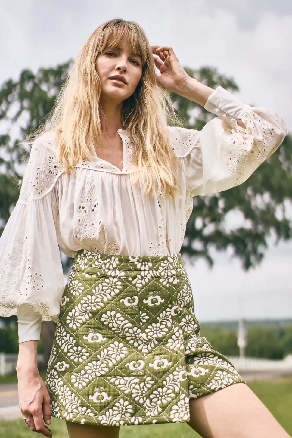 Hunter Bell strives to spark joy and inspiration with clothing that empowers women to embrace their personal style. The New York City–based label is all about fashion-forward, fun designs, crafted with meticulous detail and effortless wearability. The Naya Top in Ivory brings a romantic spirit to everyday dressing with its breezy silhouette and intricate embroidery. Made from delicately embroidered cotton voile, it features a flattering V-neckline, curved yoke, voluminous sleeves with buttoned cuffs, and airy construction for year-round versatility. Pair it with the Powell Skirt for an effortlessly feminine look or style it with the Lakelynn Pant for polished ease.