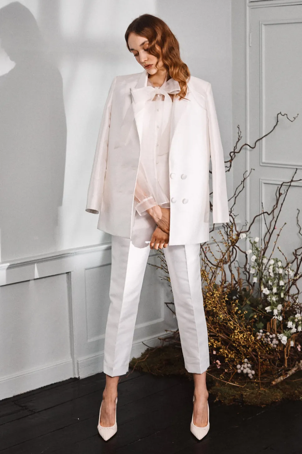 Luxury bridalwear brand Halfpenny London weaves Brit cool with a luxe sensibility, creating innovative, chic dresses and separates for the modern woman. The Neptune Blazer is a great foundation piece that can be worn from engagement to far after the honeymoon.