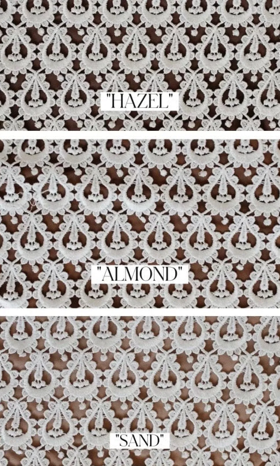 Color options: Sand – Light skin tone (Mesh fabric). Almond – Medium skin tone (Mesh fabric). Hazel – Dark skin tone (Mesh fabric). Classic ivory (Satin fabric). Classic blush ( Satin fabric).