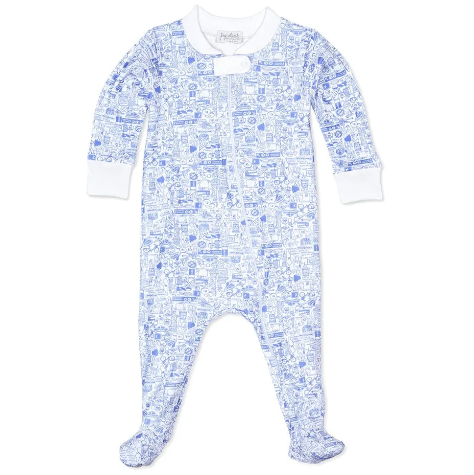Designed with a mom’s love and made with care, Boston-based Joy Street produces small-batch kids clothes that look classic from afar, but delight in details. Crafted in luxurious 100% Peruvian pima cotton in a female-run factory, every print is hand-drawn by the brand’s founder, a new mom who prizes fit and quality above all else, and isn’t afraid of a little fun. The New York City Zip Baby Onesie in New York City NYC Blue‚ with a playful pattern of New York City landmarks‚ boasts soft and durable construction, that both parents and baby will love.