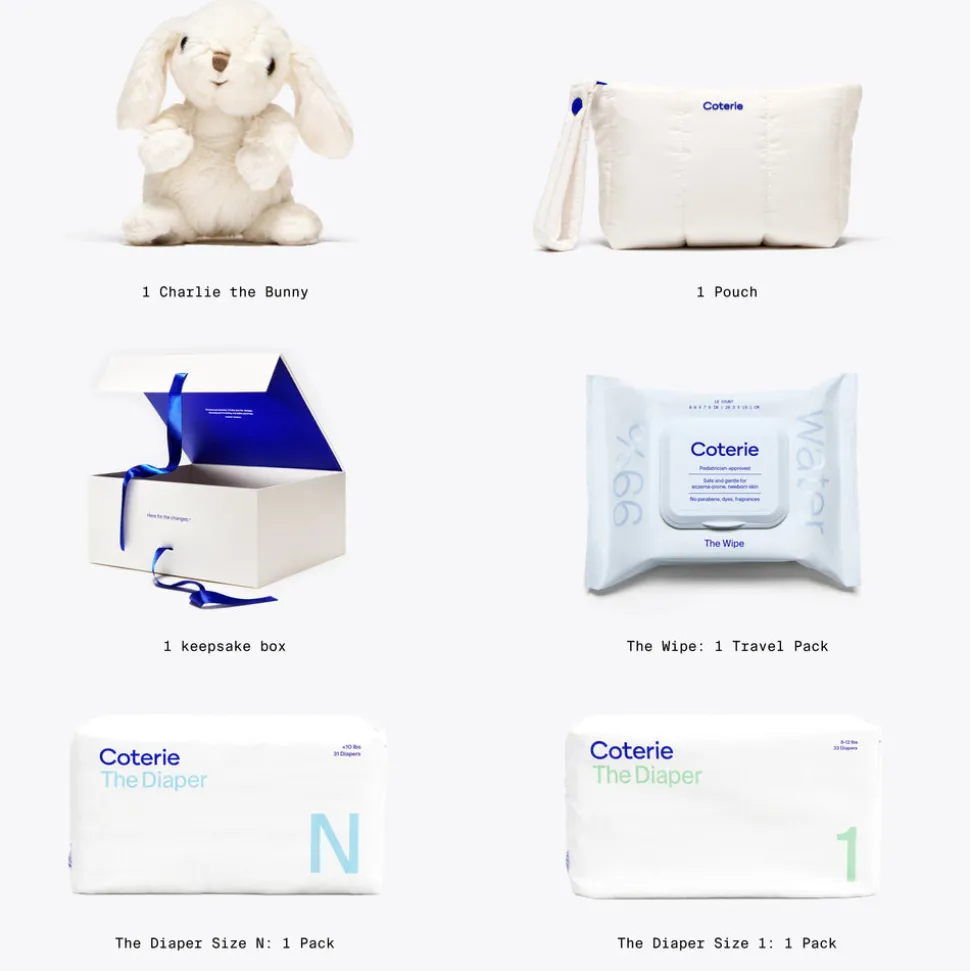 Coterie is upgrading your diapering routine with clean, ultra-soft, high-performing essentials designed for baby’s comfort and parents’ peace of mind. Their Newborn Gift Set is an elevated bundle to welcome baby to the world, including 2 packs of diapers (in sizes Newborn and 1), travel wipes, a diaper carrying pouch, and soft bunny plushy—all wrapped in a keepsake box.