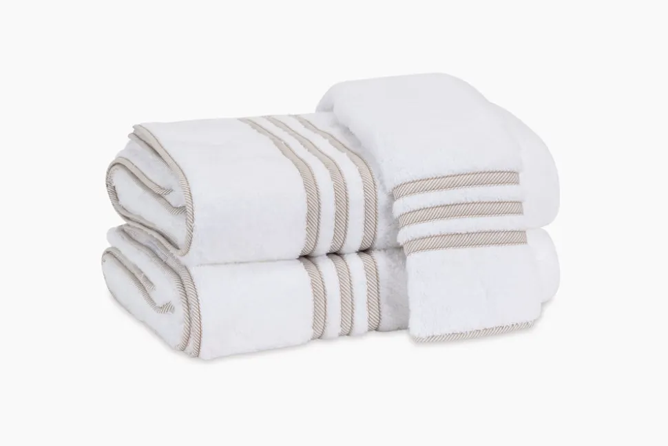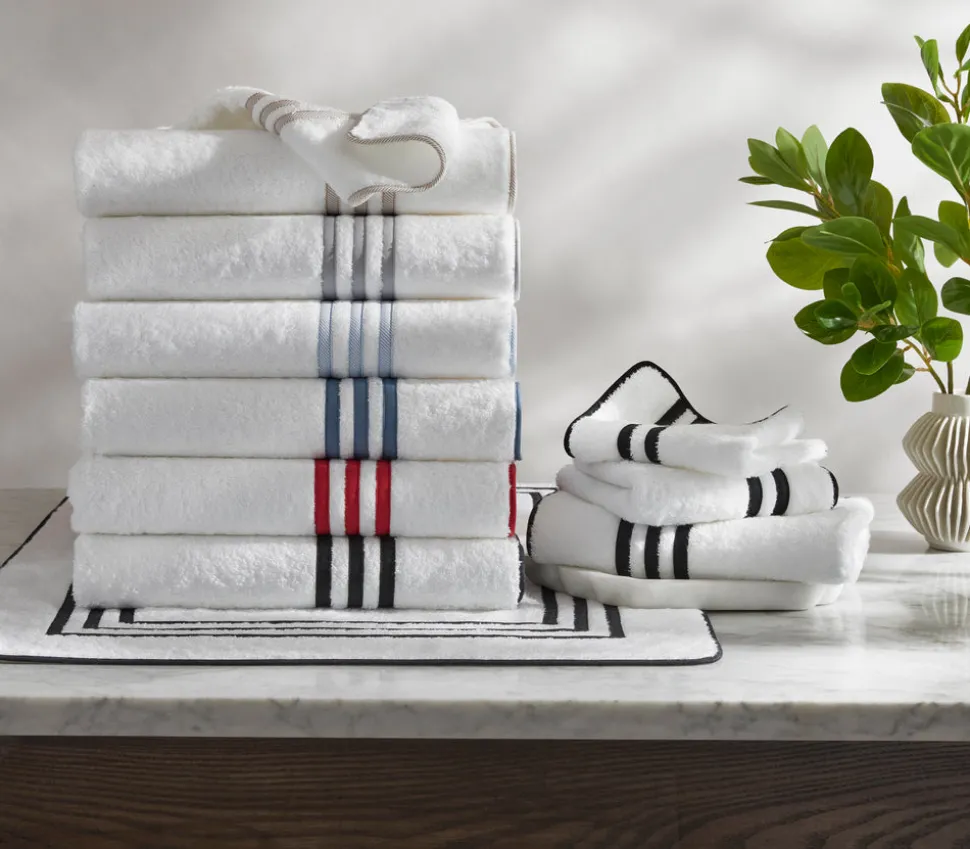 For nearly 100 years and three generations, Matouk has handcrafted luxury linens from the world’s finest materials. Their dedicated artisans in Fall River, Massachusetts are committed to creating the highest quality, most-loved bed, bath, and table linens for your home. A triple appliqué tape border on long-staple Cairo cotton terry gives the Newport Bath Collection its classic elegance and incomparable quality. Choose from beautiful colors to breathe new life into your bath.