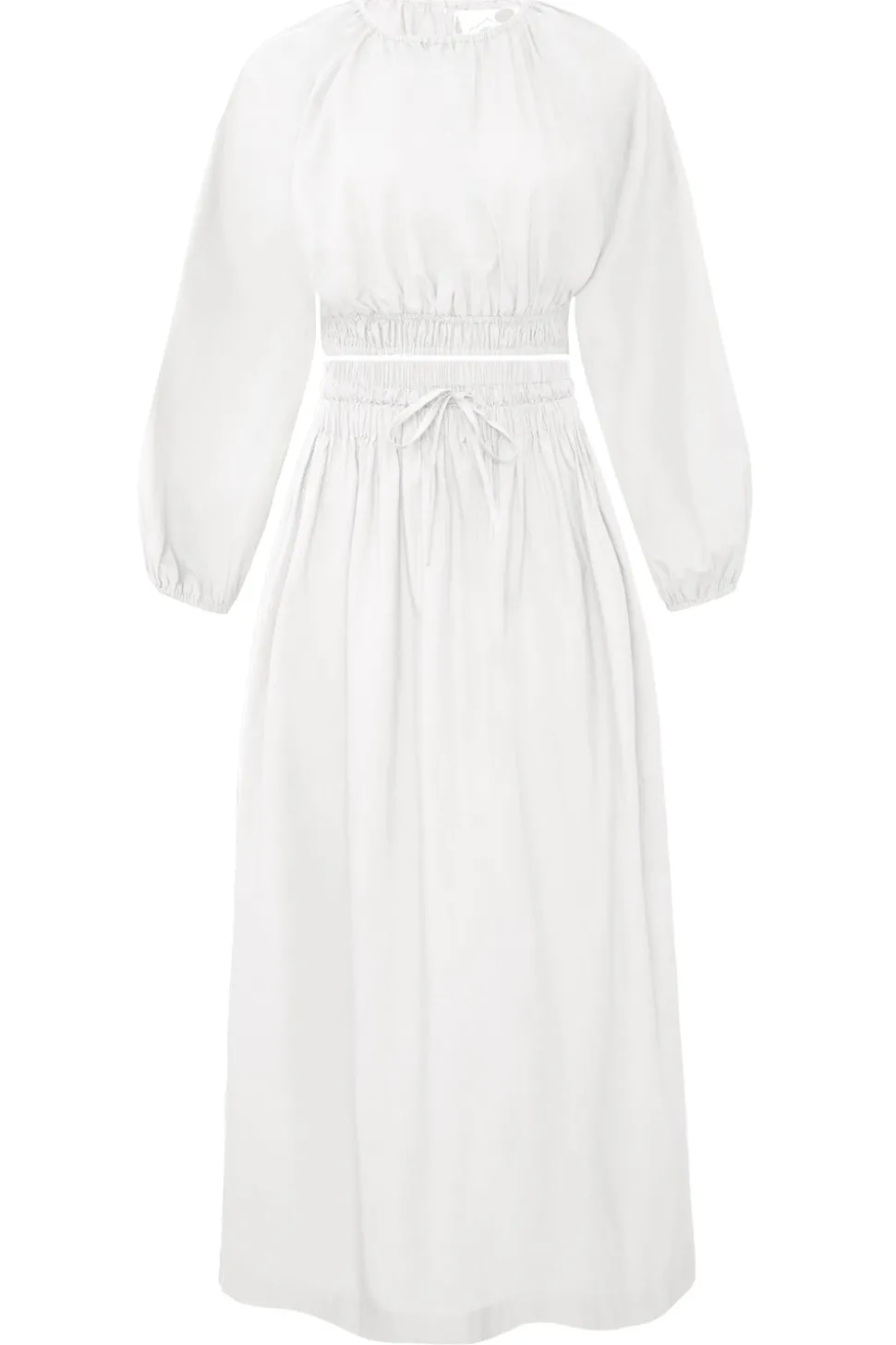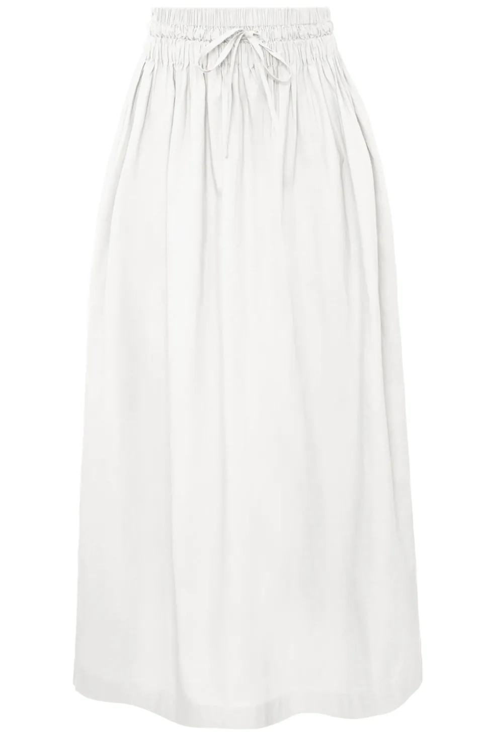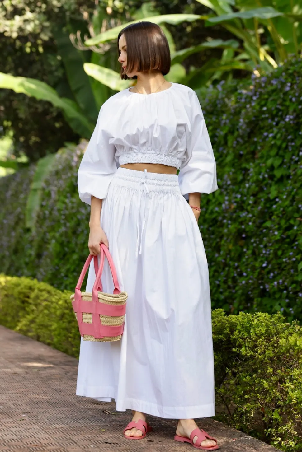 Introducing Maison Marigold, a new luxurious small-batch women’s resortwear brand inspired the wanderlust of travel. Our collections effortlessly transition from beachside lounging to an elegant evening on the town. The simplicity of design and classic silhouettes are the foundations for each and every style. Hand-printed linen and cotton make for comfortable and effortless pieces that are both feminine and flattering. An elevated take on a classic summer skirt, the Newport Skirt in White is bound to be a wardrobe staple. It is crafted from crisp cotton poplin that’s airy and lightweight with just the right amount of structure. It features hidden pockets, side seam slits for ease of movement and a wide figure flattering supportive elastic waistband.