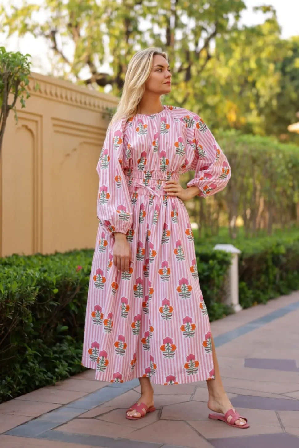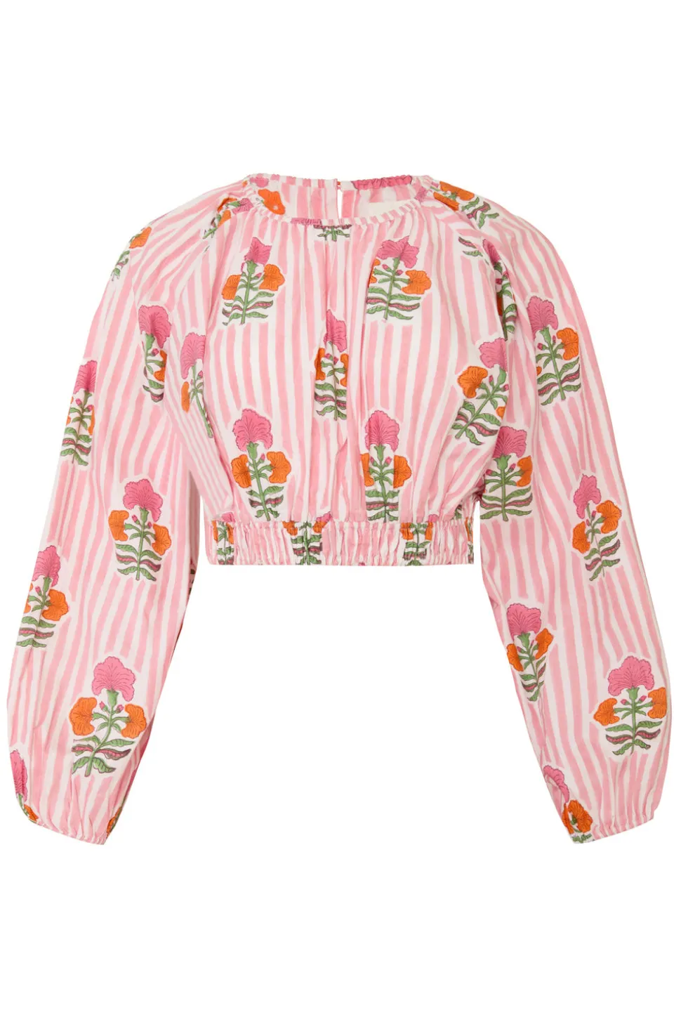 Introducing Maison Marigold, a new luxurious small-batch women’s resortwear brand inspired the wanderlust of travel. Our collections effortlessly transition from beachside lounging to an elegant evening on the town. The simplicity of design and classic silhouettes are the foundations for each and every style. Hand-printed linen and cotton make for comfortable and effortless pieces that are both feminine and flattering. An effortless classic, the Newport Top in Pink & Orange Flower embodies timeless and sophisticated style. Crafted from crisp cotton poplin that’s airy and lightweight with just the right amount of structure. It features an elasticized gathered neckline, cuffs and a supportive waist. Complete the look and wear it with the matching skirt or pair it with a pair of your favorite jeans.