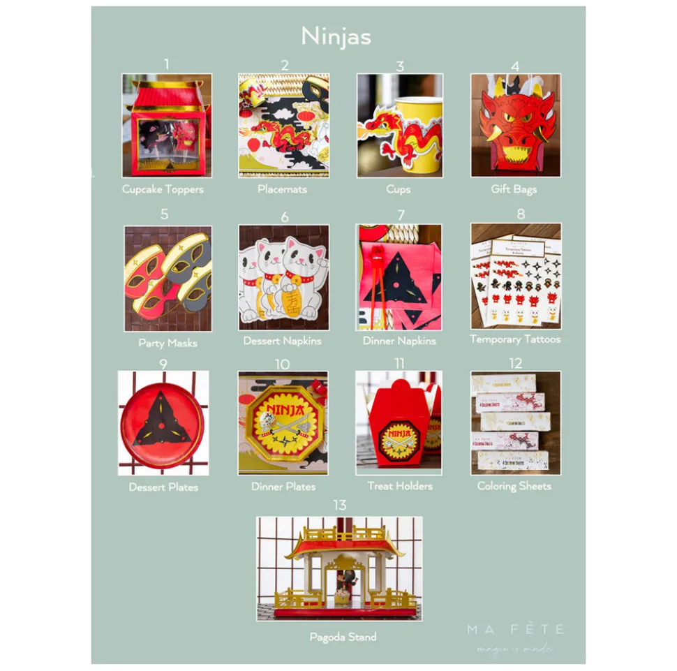 A mom with two young children, Anna Bacon found herself bored with the same old party themes, which is how Ma Fête (“My Party” in French) was born. She creates boxes of matching party materials—plates, cups, napkins and more—with fun, kid-friendly motifs, helping parents throw the most memorable parties, with minimal effort. The Ninja series brings a martial arts motif to add delight and drama to your little one’s bash. The Ninja Must Have Box includes colorful dinner plates, cups, napkins, goodie bags, placemats, temporary tattoos, and more. Everything you need to carry off a party without a hitch.