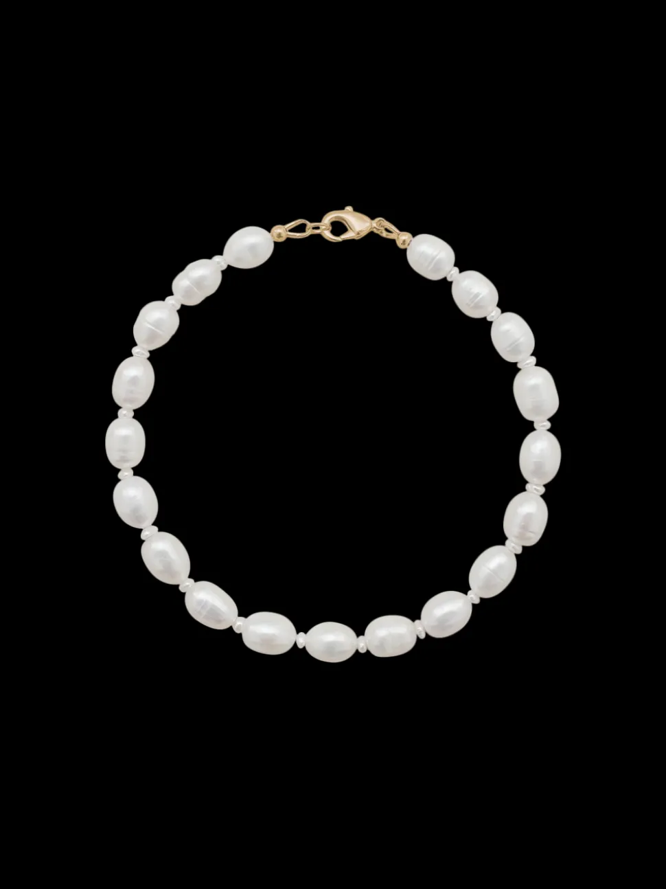 From Newport, Rhode Island, designer Kerry McGauley uses her experience in the fashion industry and inspiration from the town’s picturesque shoreline to craft singular yet timeless pieces—shining at the most memorable events and through your everyday. The Nixie Anklet in White is strung with luminous freshwater pearls and finished with a gold-filled lobster clasp, offering an elegant, ocean-inspired detail for warm-weather styling.