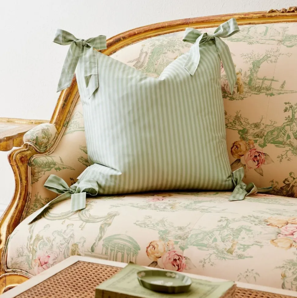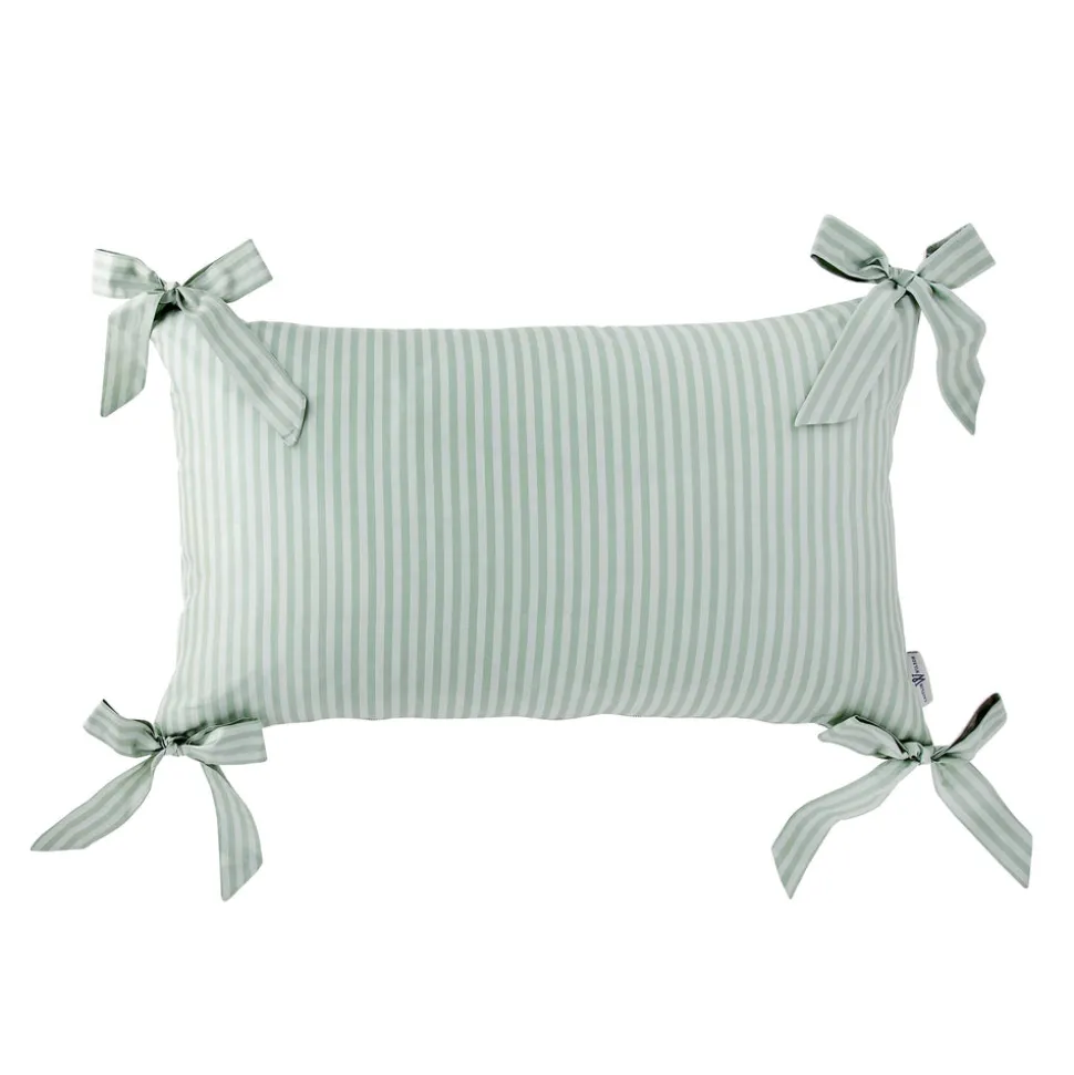 Founded on timeless design principles, Caitlin Wilson Design blends sophistication and uniqueness, embracing a variety of styles. The brand features textiles ranging from antique-inspired Persian rugs to custom pillows, wallpaper, lighting, furniture, and more. With a focus on pattern and color, Caitlin Wilson Design creates distinctive, signature interiors that bring out the full potential of every space. A classic wintergreen stripe accents any room gracefully. The Noelle Bow Pillow in Wintergreen makes for a wonderful, tailored complement to just about any pattern from season to season.